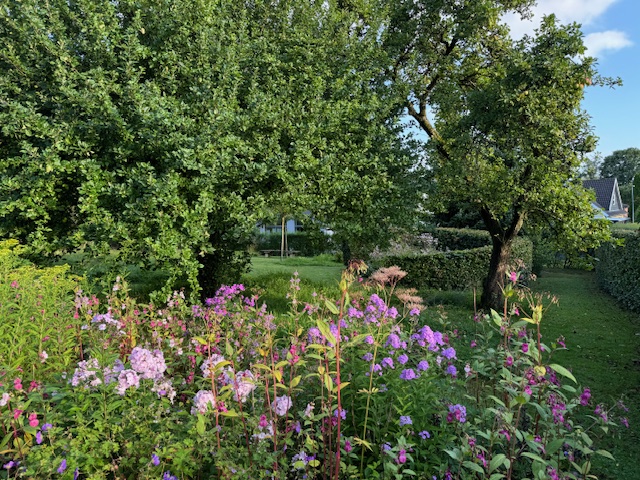 Jeg er blomsterbonde og -binder, dyrker en stor skærehave med mange forskellige sommerblomster, så der er noget at binde af hele sæsonen. Staudehaven er fuld af blomster, haverum, kringelkroge og en nyligt anlagt vild have med hjemmehørende planter – og nærmest altid i forandring.