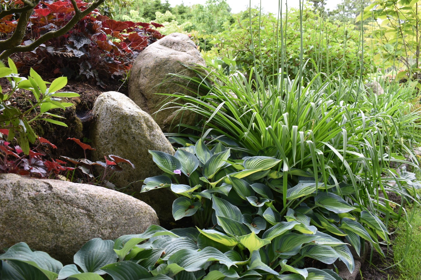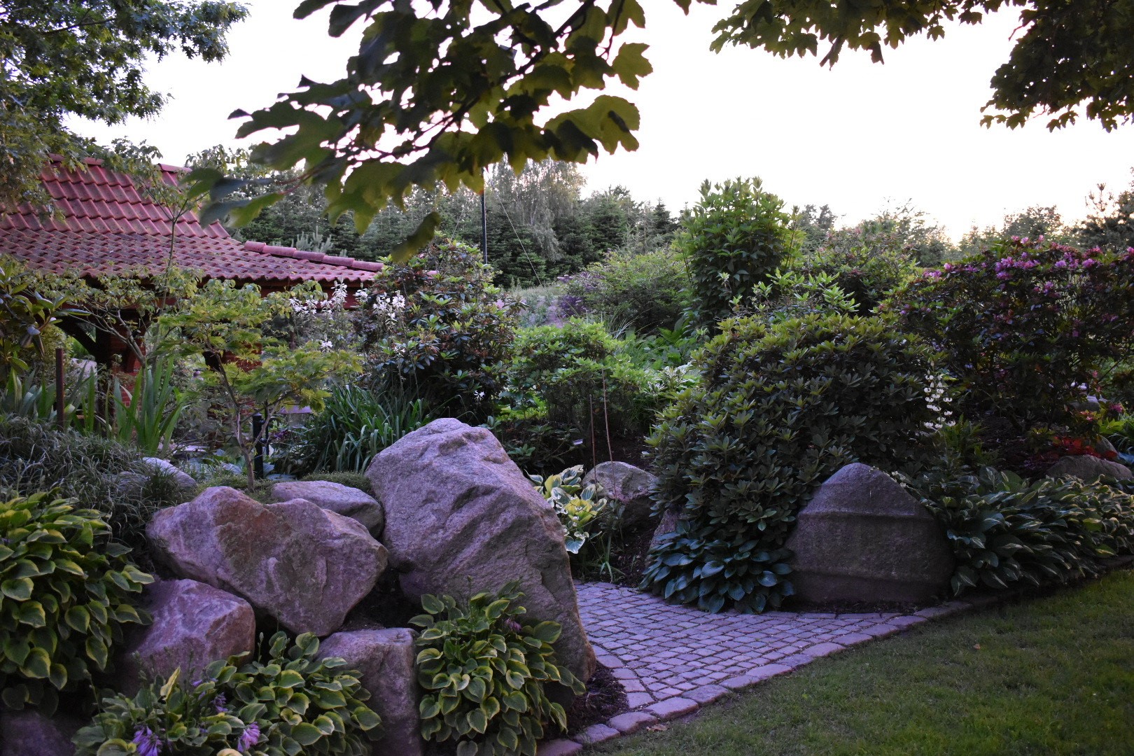 26.000 m2 have, fyldt med rhododendron, store sten, vand, træer og vild natur. Vinder af den skønneste have 2020.