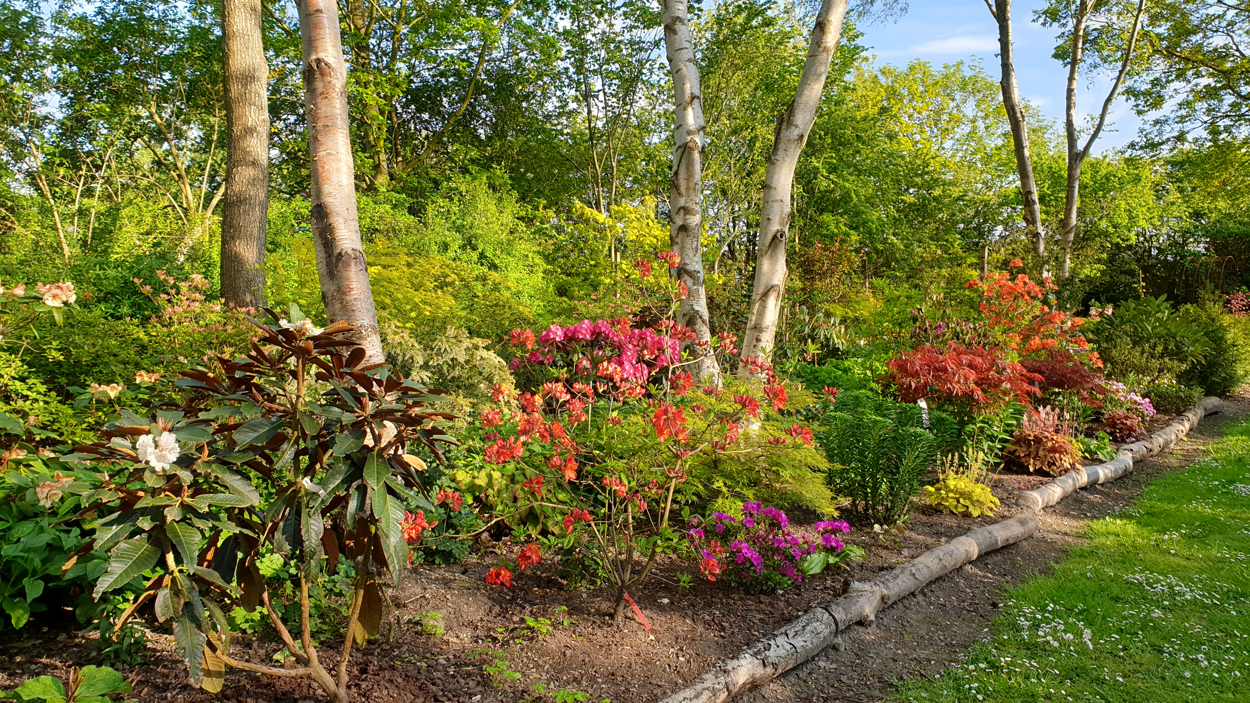 mange forskellige rhododendron/azalie ,sjældne træer/buske