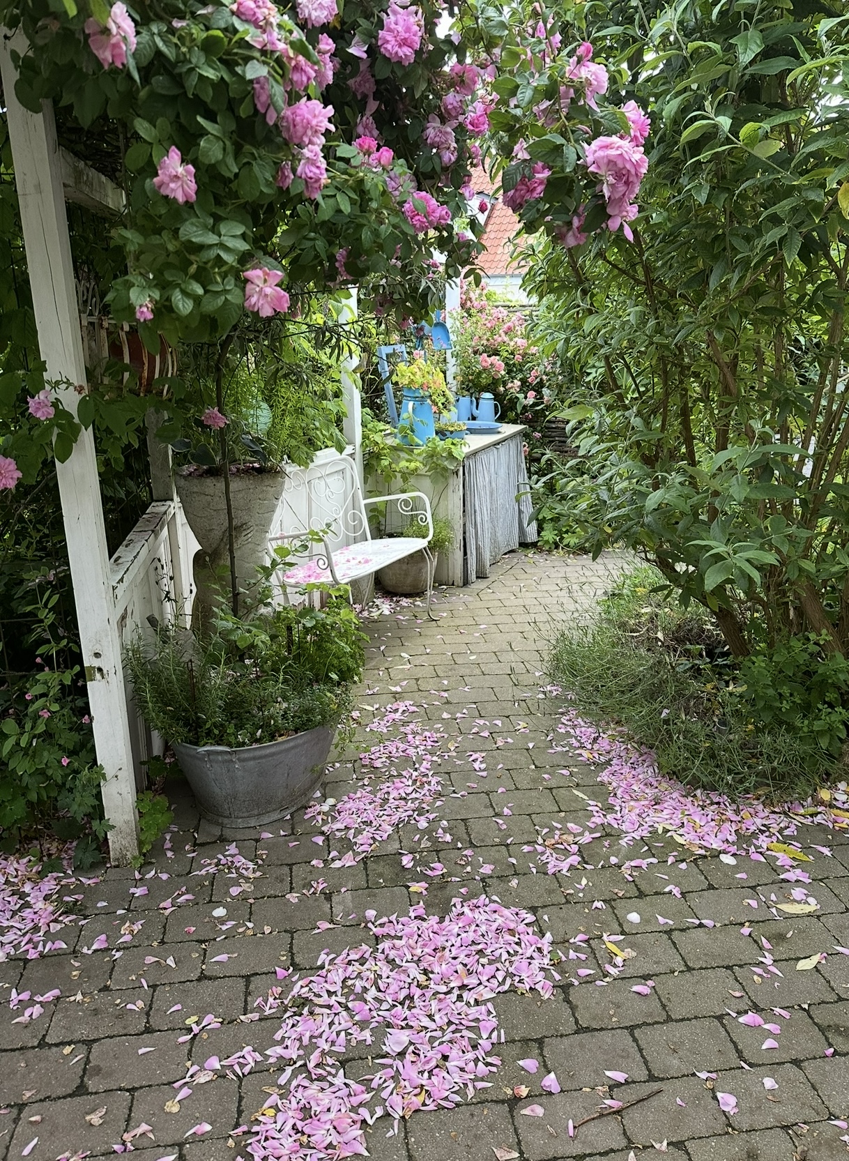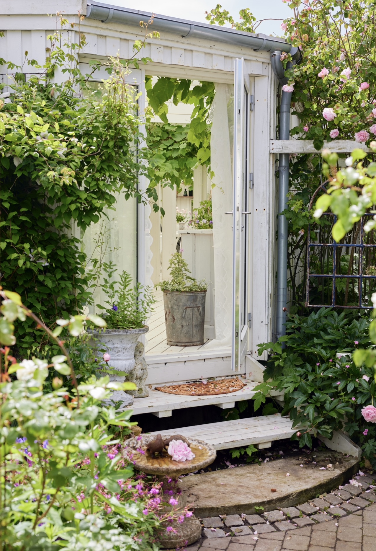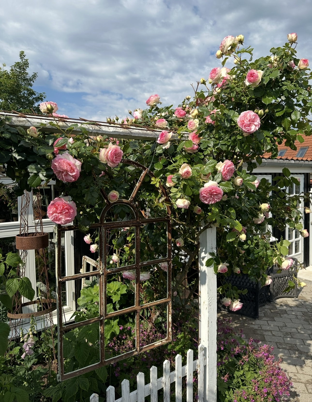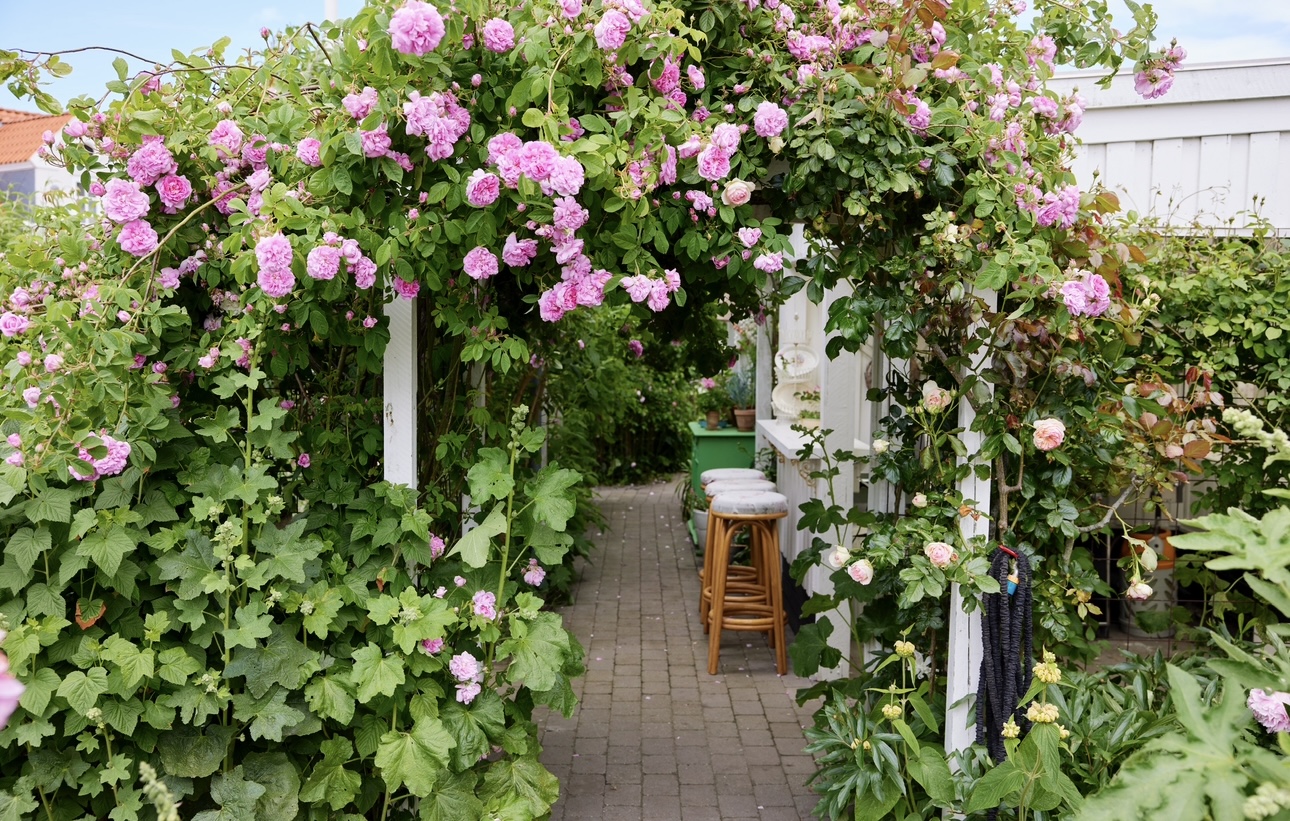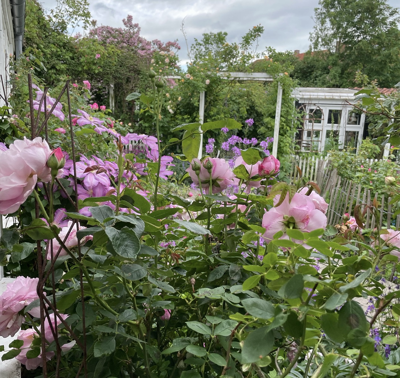 Susannes Romantiske byhave En romantisk oase midt i Slagelse centrum. "The Earth laughs in flowers" står der i den støbte cementflise ved flagstangen, og det er et skønt og meget rammende citat for haven som bruges og nydes dagligt og indgyder til masser af hygge og blomsterglæde. Haven på 650m2 har vi selv bygget op helt fra start, og der sker noget nyt i den hvert år. Haven består af flere rum som alle er fyldt med smukke roser og fine stauder. Der er en stor lukket terrasse, et havehus og to drivhuse, som alle huser masser af blomster, og spiselige afgrøder. Her er man hjertelig velkommen til at sætte sig ind og nyde et stykke kage, som sælges på dagen. Jeg er vild med den romantiske stil og har en forkærlighed for smukke roser, som der findes mange af på grunden både små og store. Til roserne har jeg plantet gode selskabsplanter i form af stauder, clematis og dahliaer, og sået masser af sommerblomster. Til daglig er jeg dagplejer, og dagplejebørnene og jeg nyder det store uderum, og det at kunne hente usprøjtet grønt fra drivhuset, samt vindruer, og bær fra diverse buske rundt i haven. Haven er selfølgelig sprøjtefri, og jeg vægter insektlivet højt og har flere insektboliger, og osse mange fuglehuse hvilket fordrer en god biodiversitet. Man kan se lidt af vores have i årets første digitale HAVEN blad😊