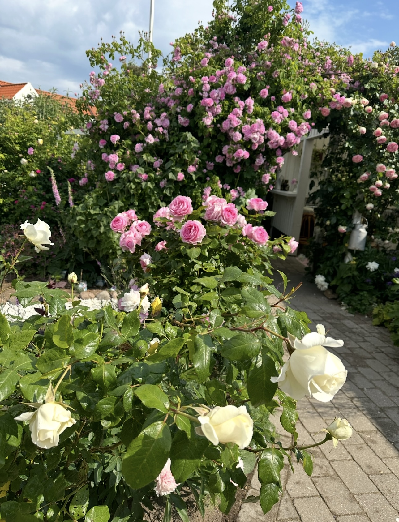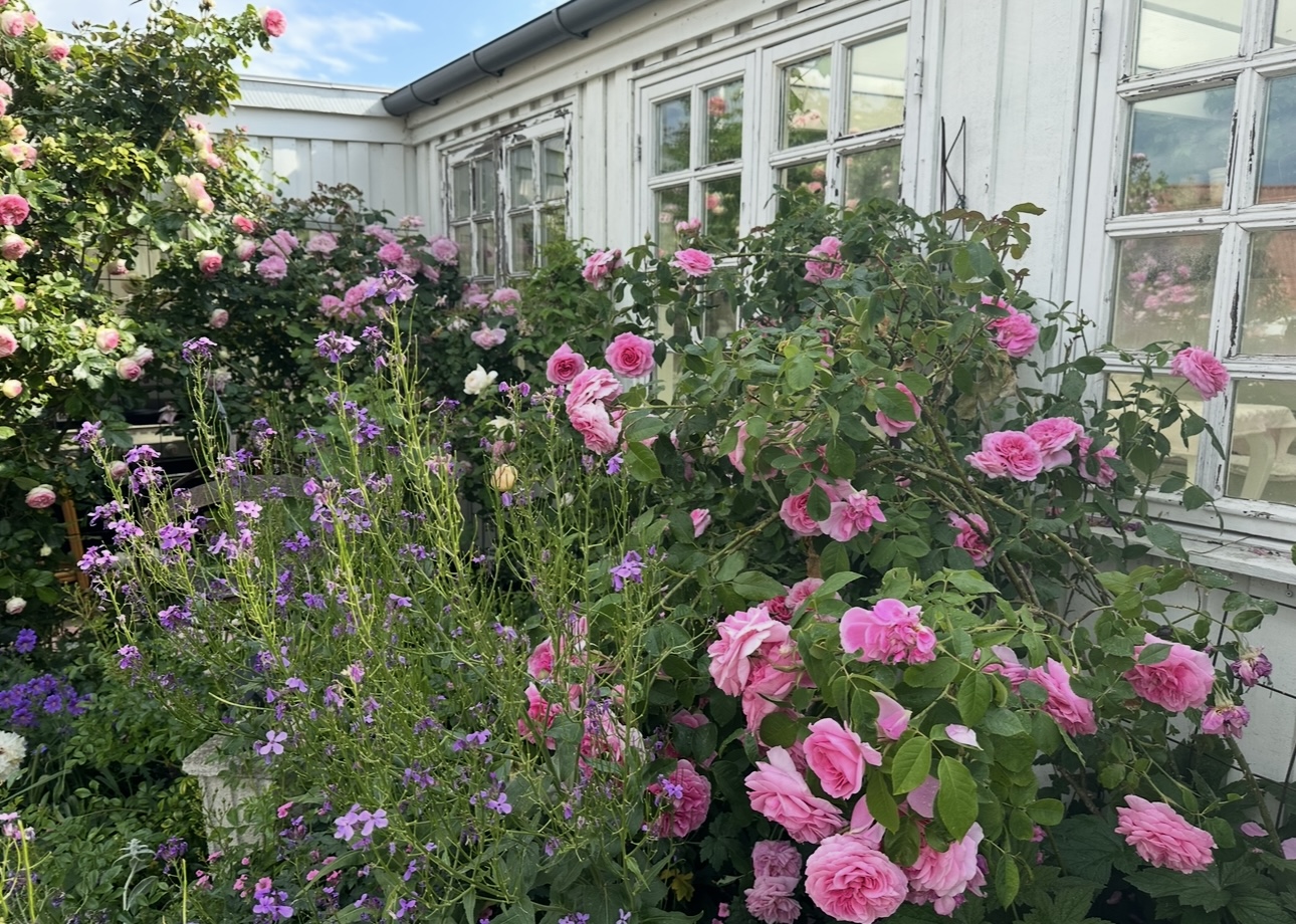 En romantisk oase midt i Slagelse centrum med mange roser og stauder. Haven består af flere rum. Havehuse og drivhuse.