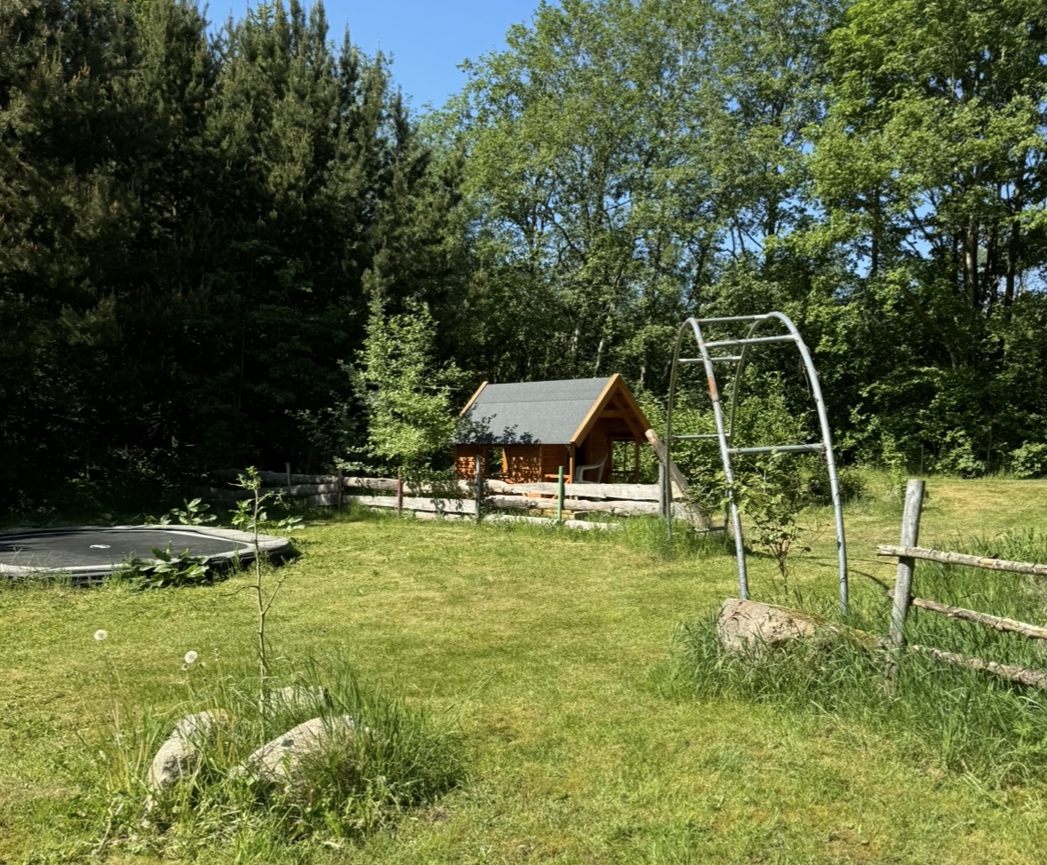 Den store have på 20.000 kvm er for hele familien. Her er flere forskellige dyr blandt andet: geder, høns, fisk, katte og ænder.