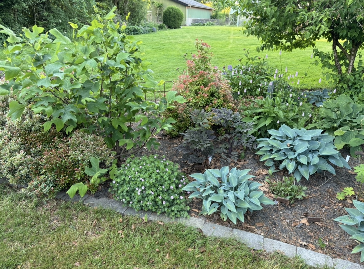 Haven blomstrer hele året. Der er forskellige afdelinger i haven, frugtplantage, sø med vandfald, bålplads, lejrplads, stauder, pilehytte, blomster og juletræer.