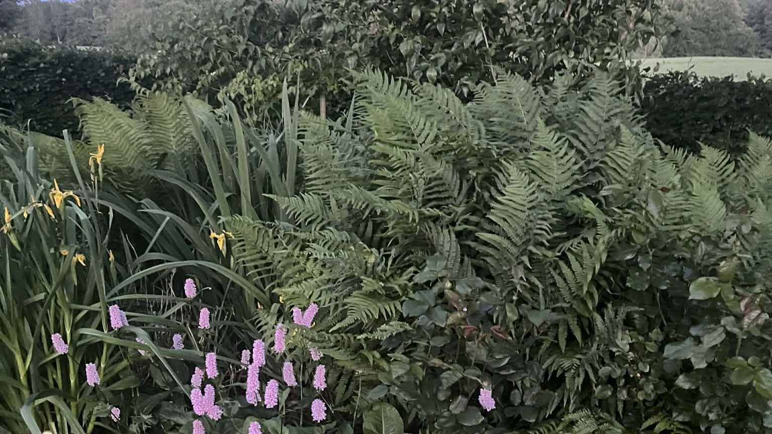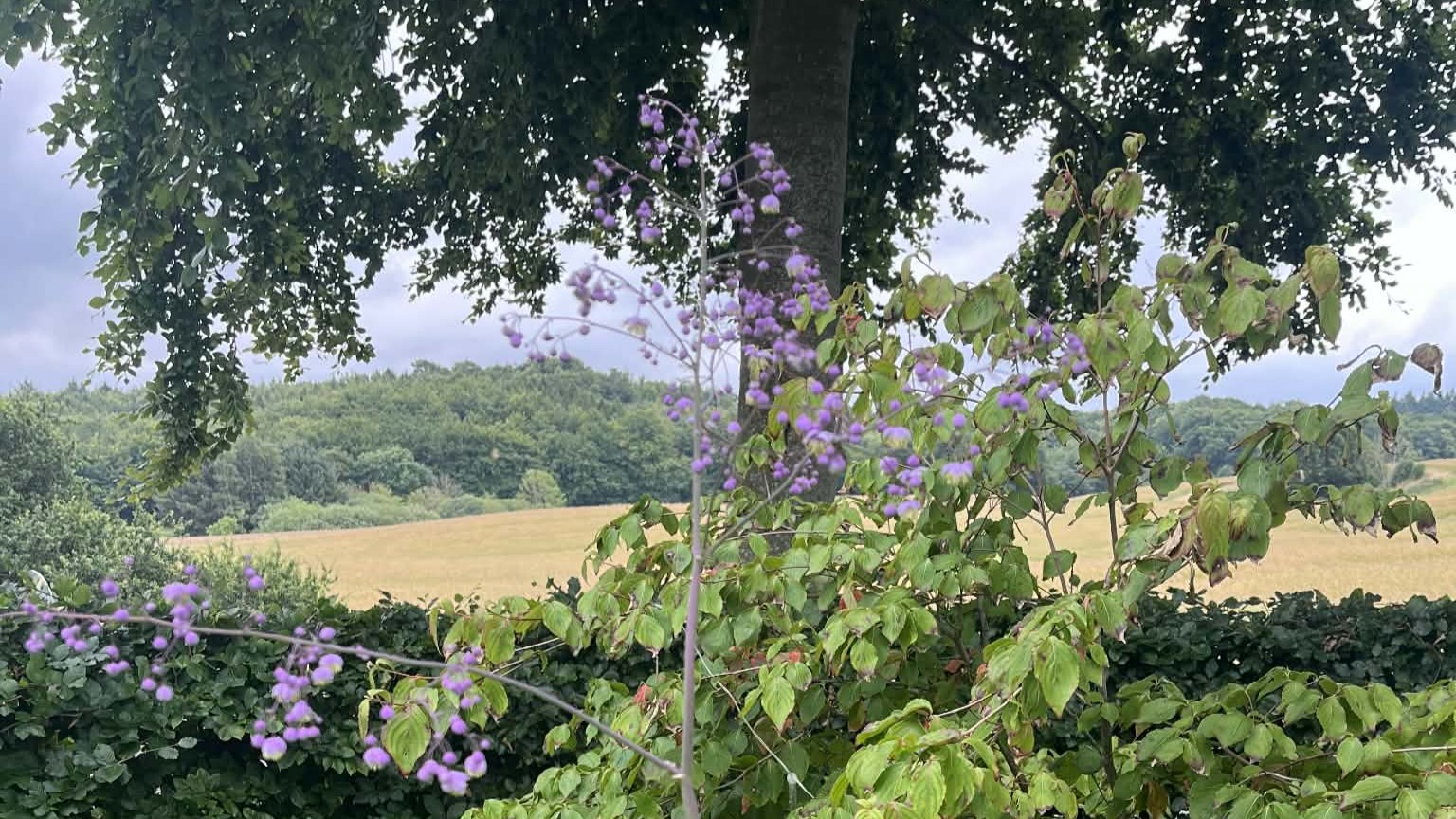 Vores have er omgivet af kuperet terræn og smuk natur, så haven er primært forgrund for det omkringliggende landskab.