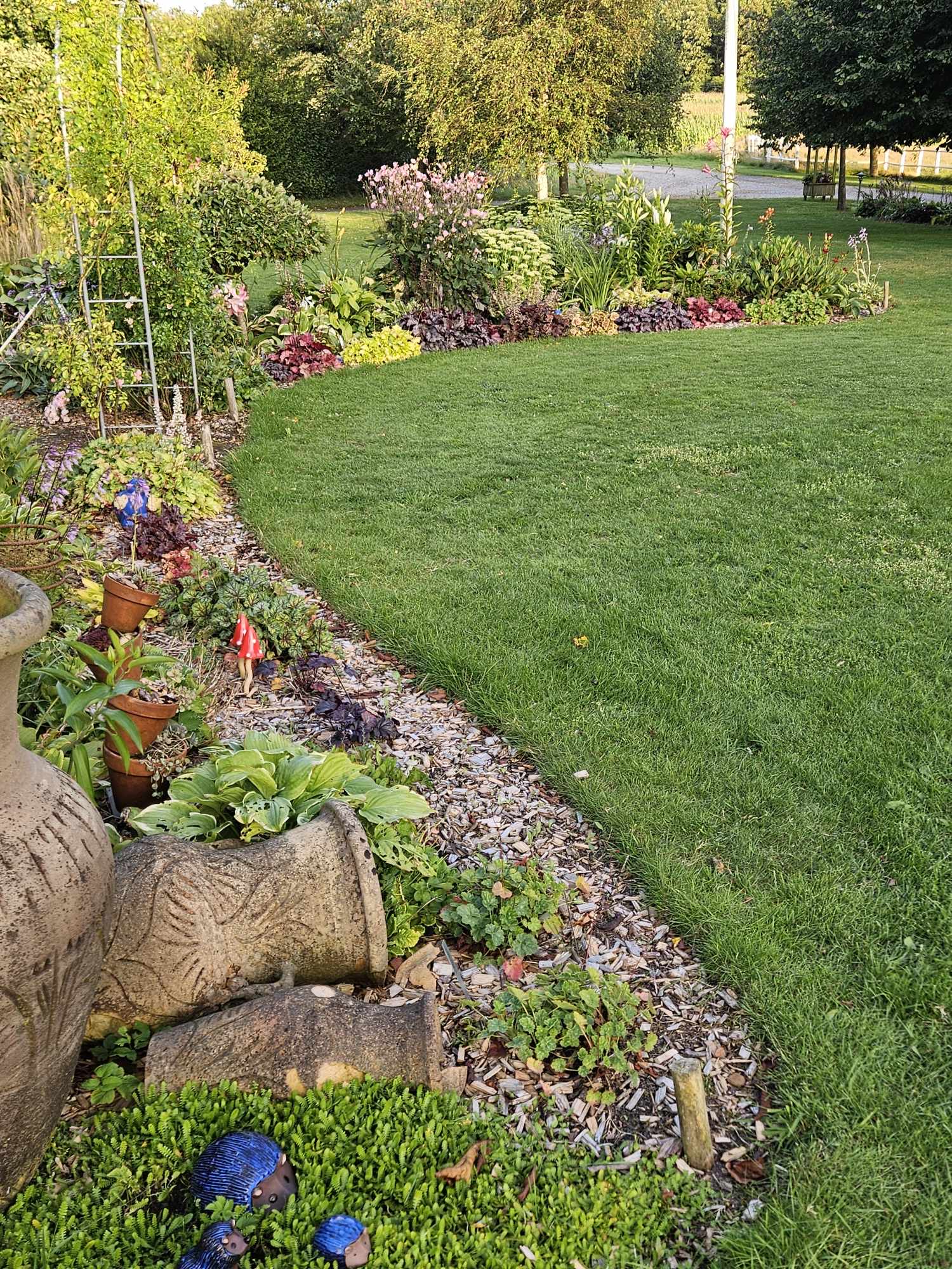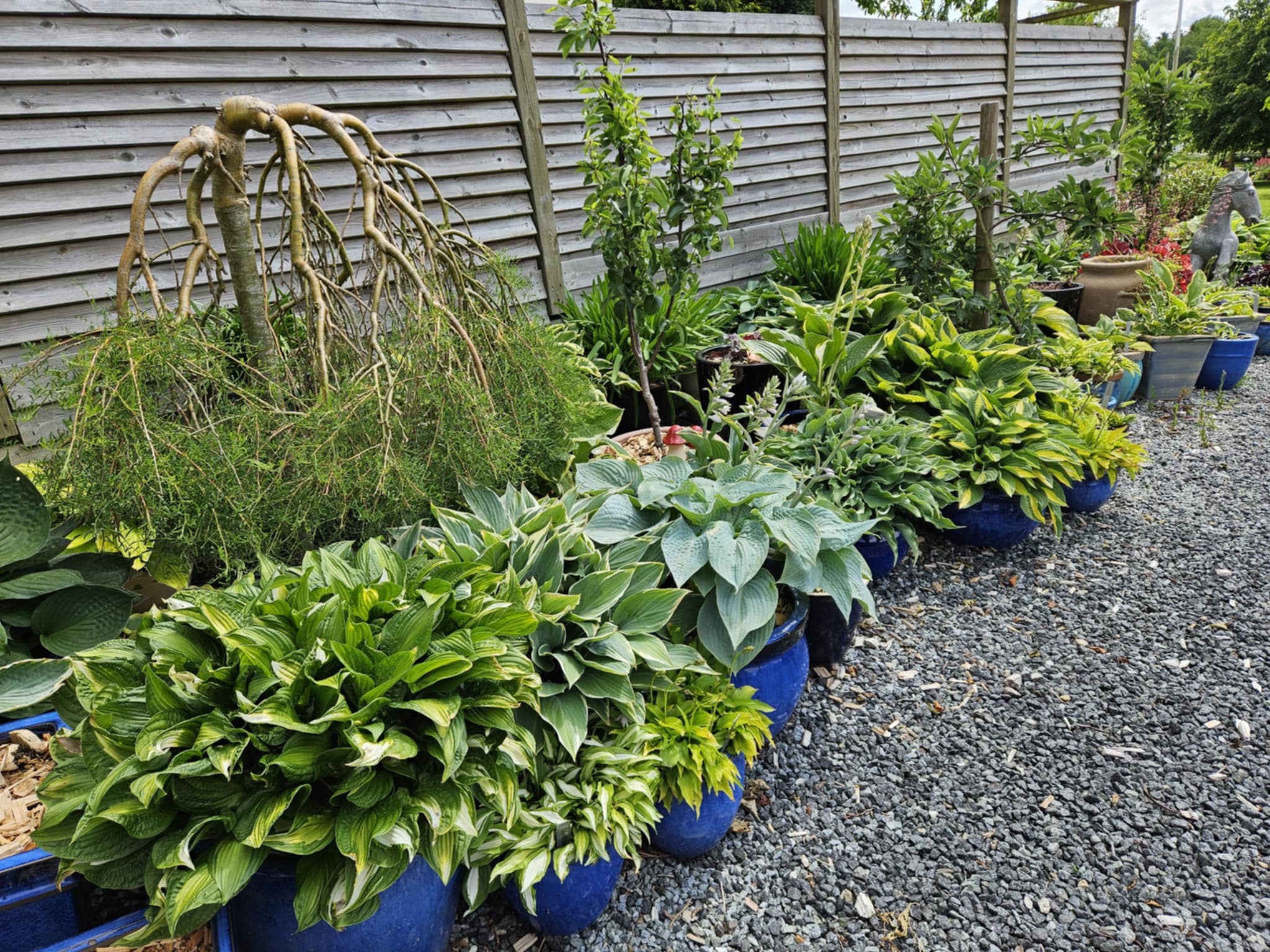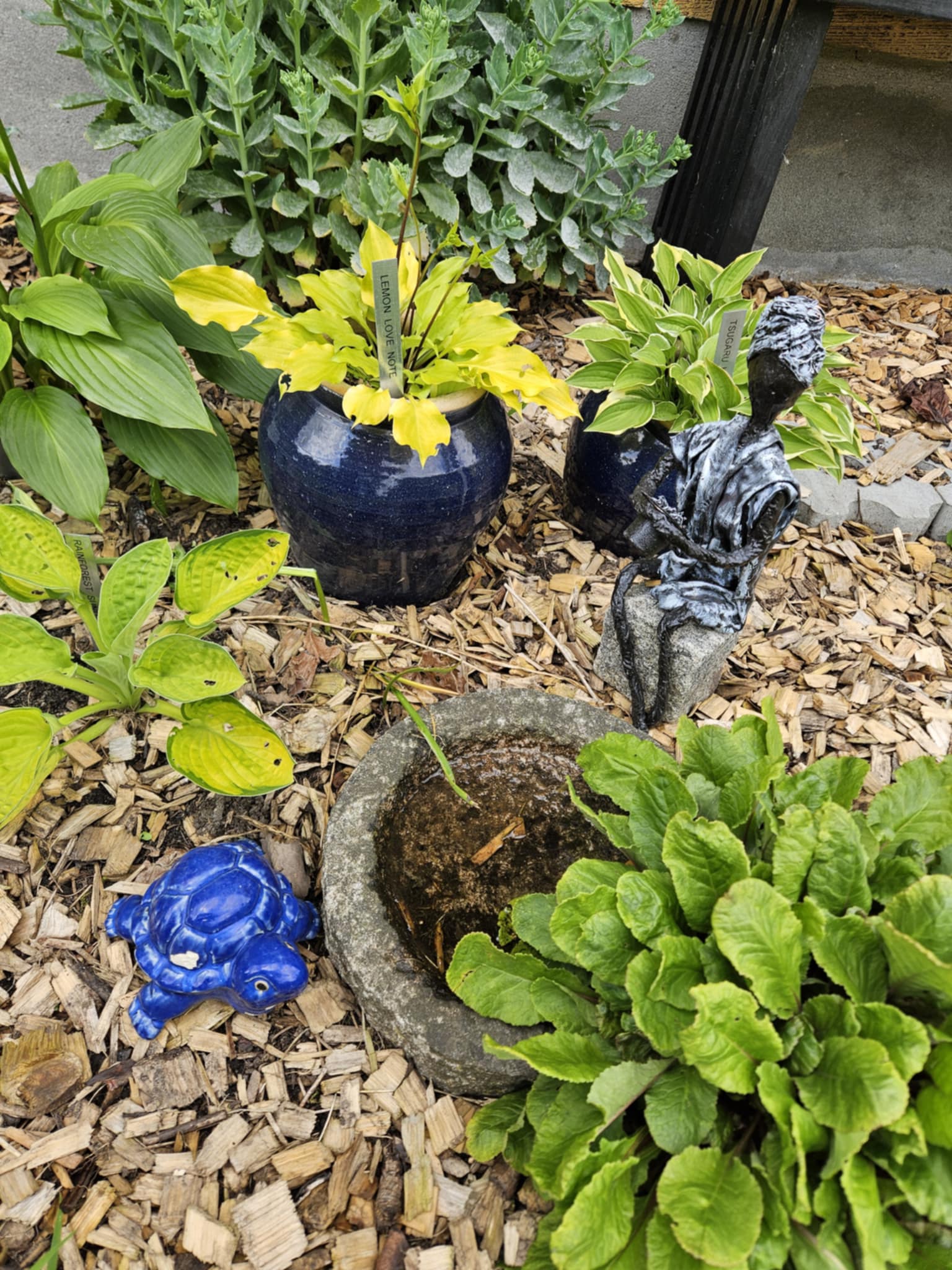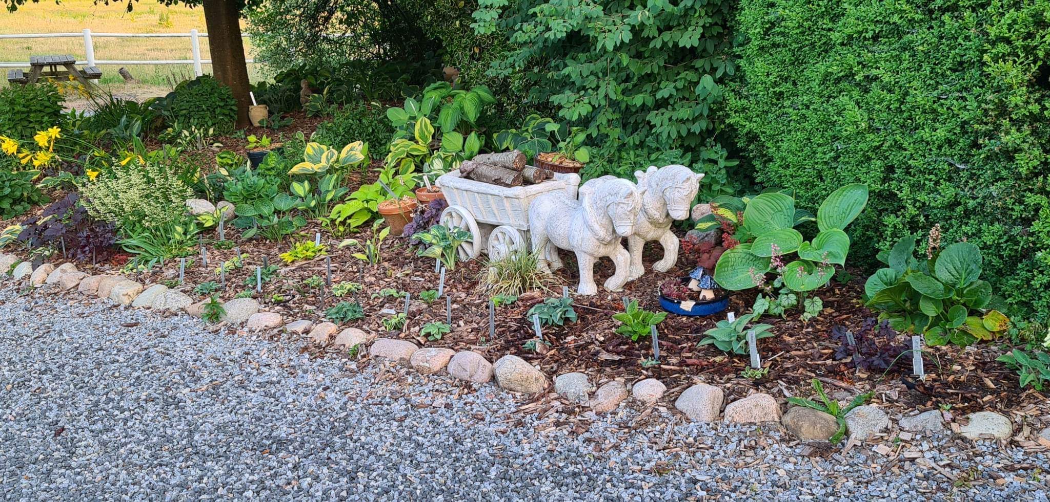 900 forskellige navngivne hostaer pryder haven suppleret med mange forskellige alunrod, over 100 forskellige liljer og derudover stauder, fordelt på 1500 m2, der giver et fantastisk farvespil med fryd for øjne og sjæl. Har salgsbod af ca. 200 navngivne hosta og en del liljer