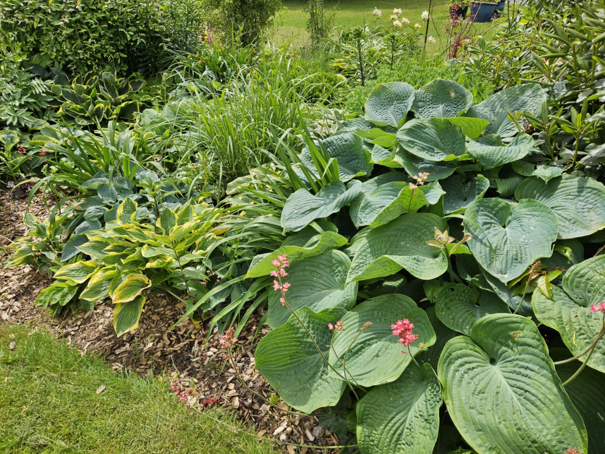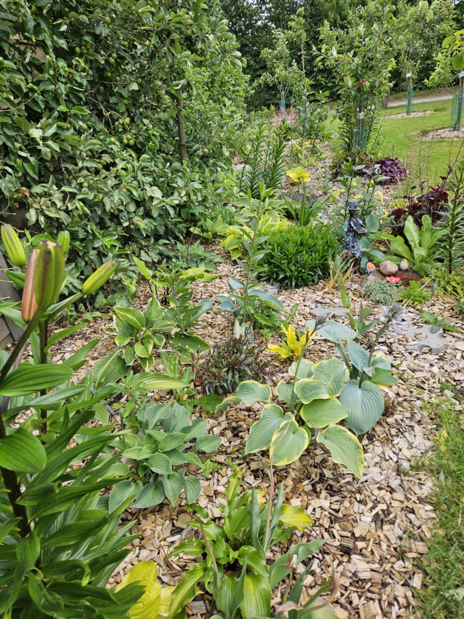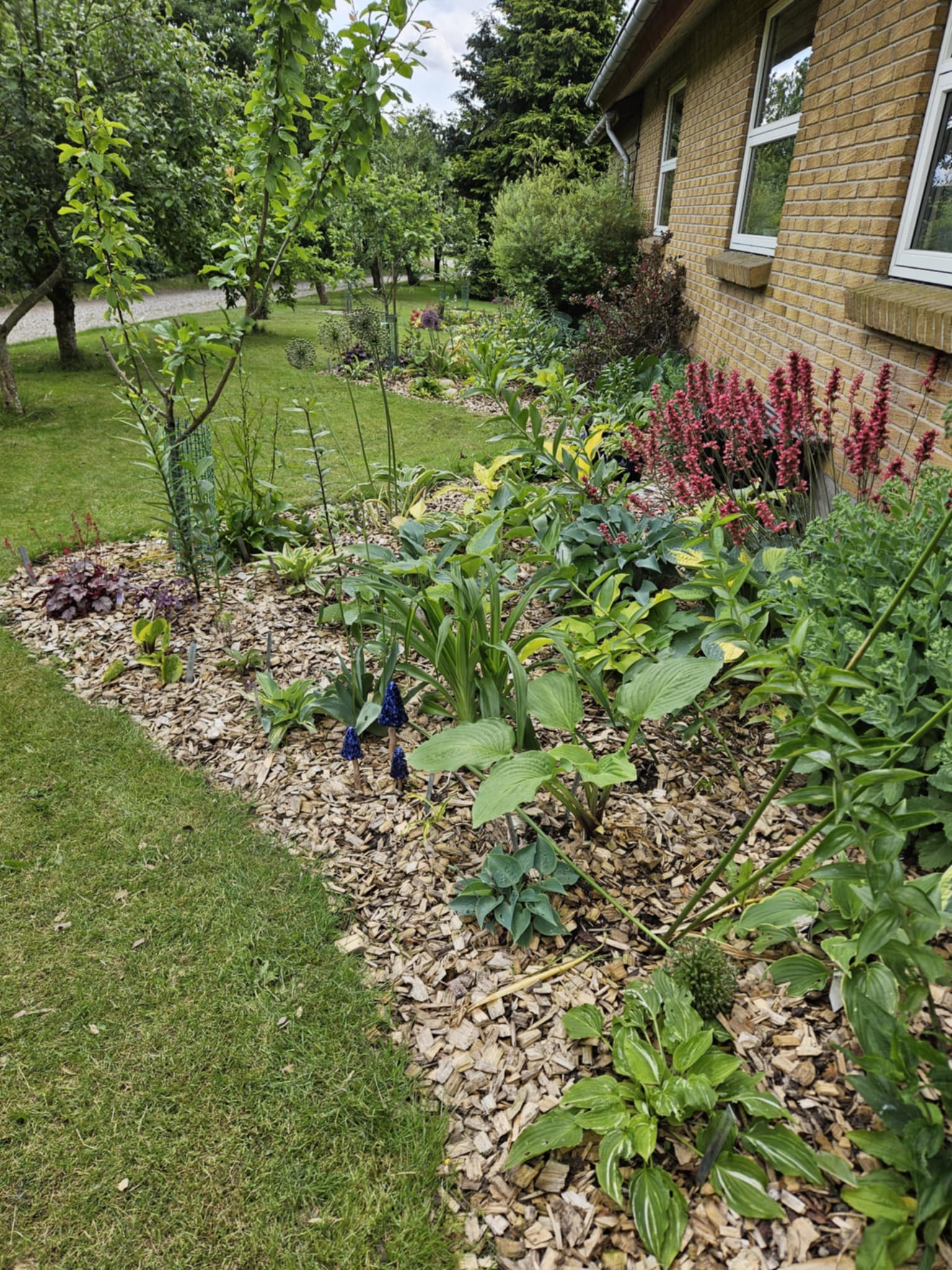 Ung hosta have suppleret med alunrod, liljer og stauder.