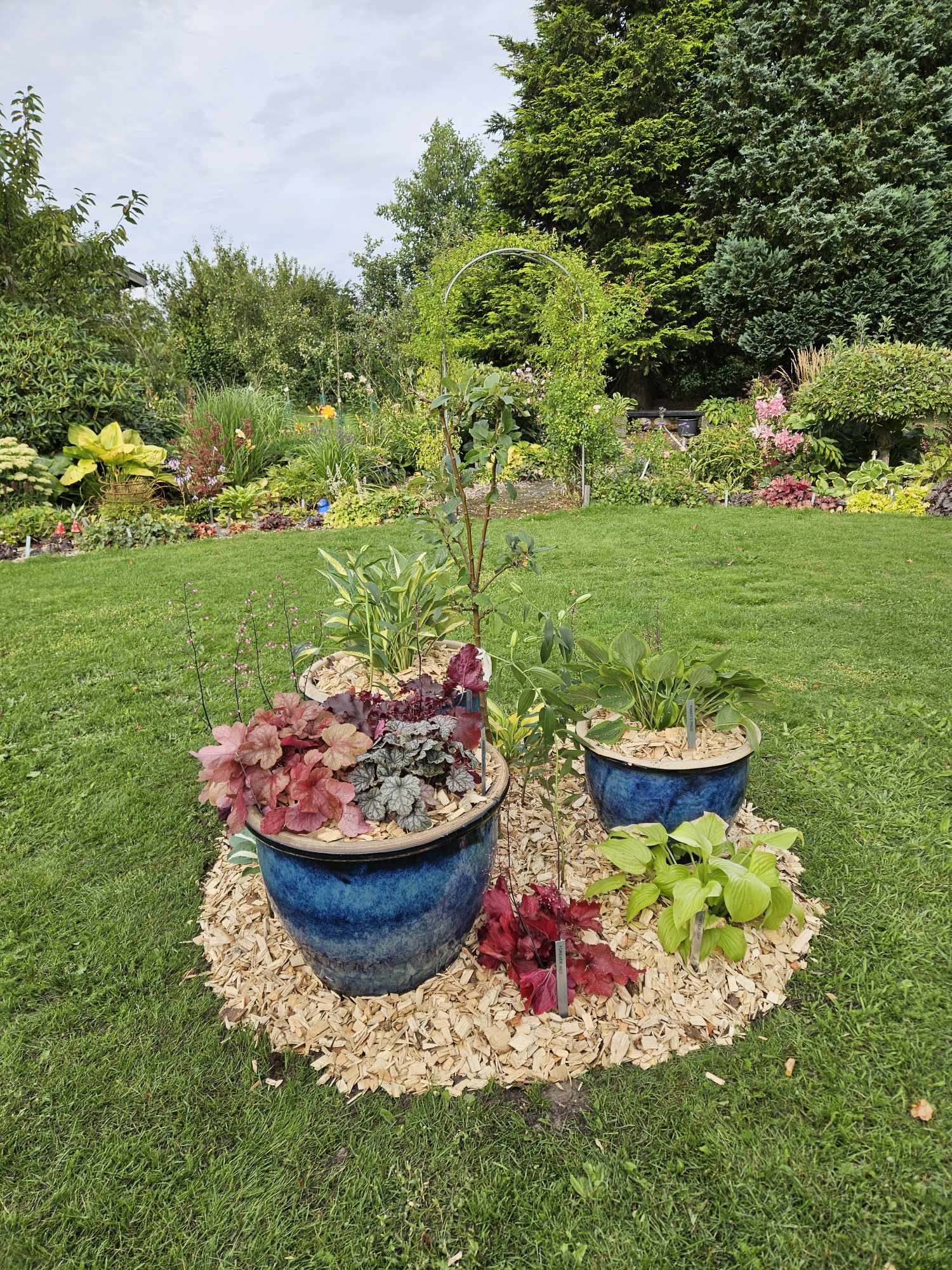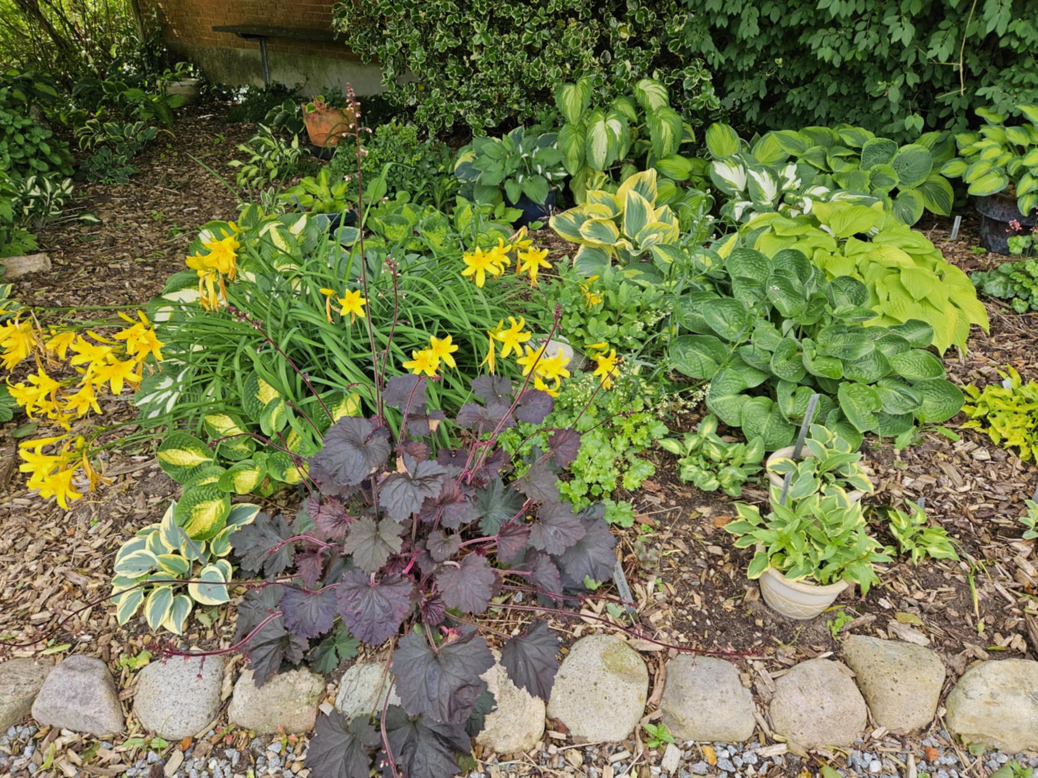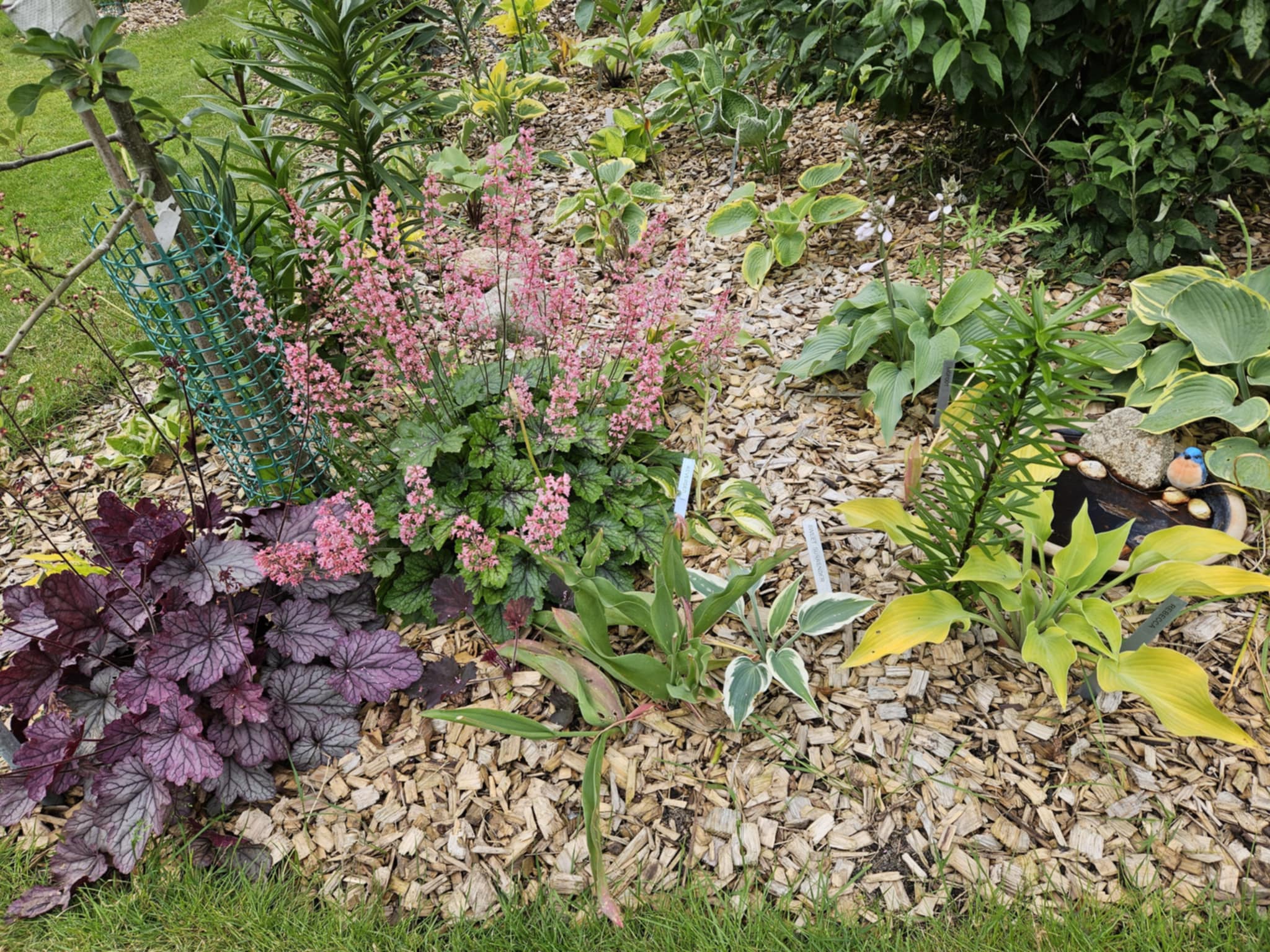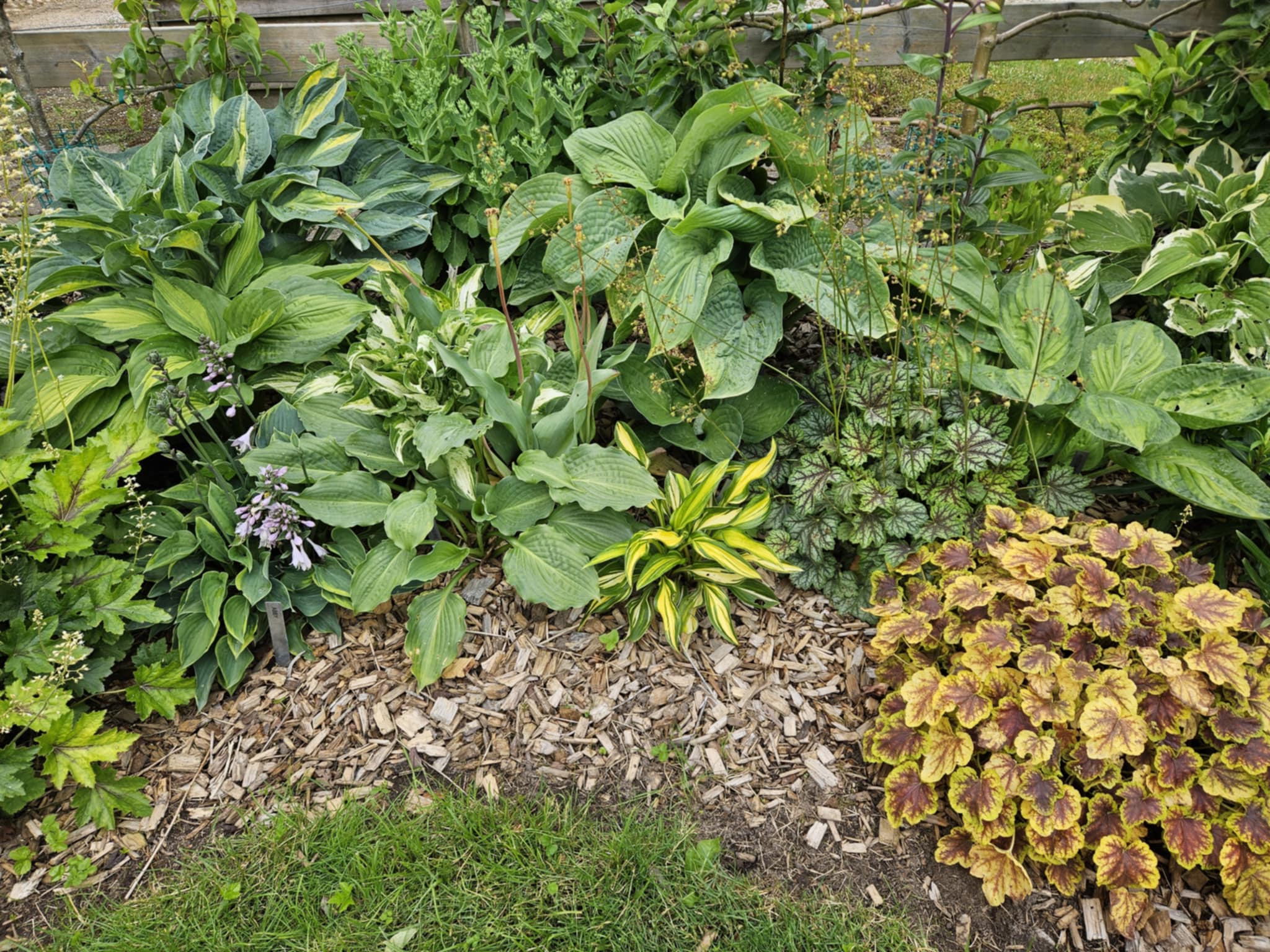 Ung hosta have suppleret med alunrod, liljer og stauder.