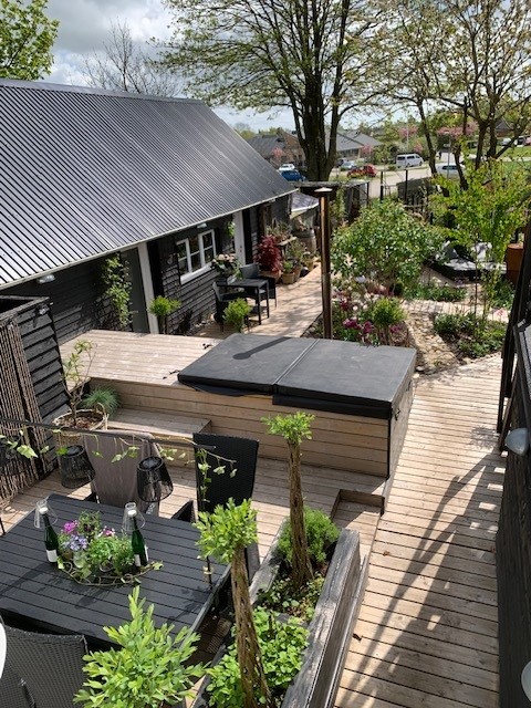 Her finder du både et hyggeligt udekøkken og et indbydende vildmarksbad, et orangeri fyldt med liv og stemning, samt masser af hyggelige siddepladser, hvor du kan nyde haven fra forskellige vinkler. Urtehaven og blomsterbedene bidrager med dufte, farver og smag, og i den lille dam svømmer fiskene roligt omkring og tilfører haven en fredfyldt stemning.