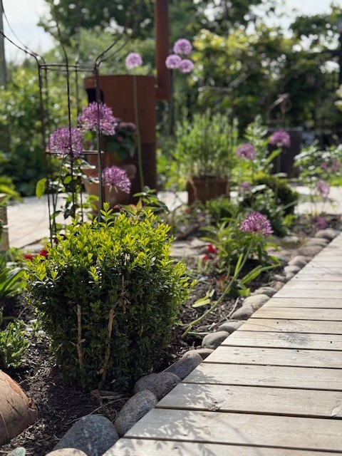 Min have er anlagt fra bunden i 2020 og er resultatet af mange timers egen indsats og passion for haveliv. På 850 kvadratmeter har jeg skabt en personlig oase, inddelt i små grønne rum, der hver især byder på noget særligt.