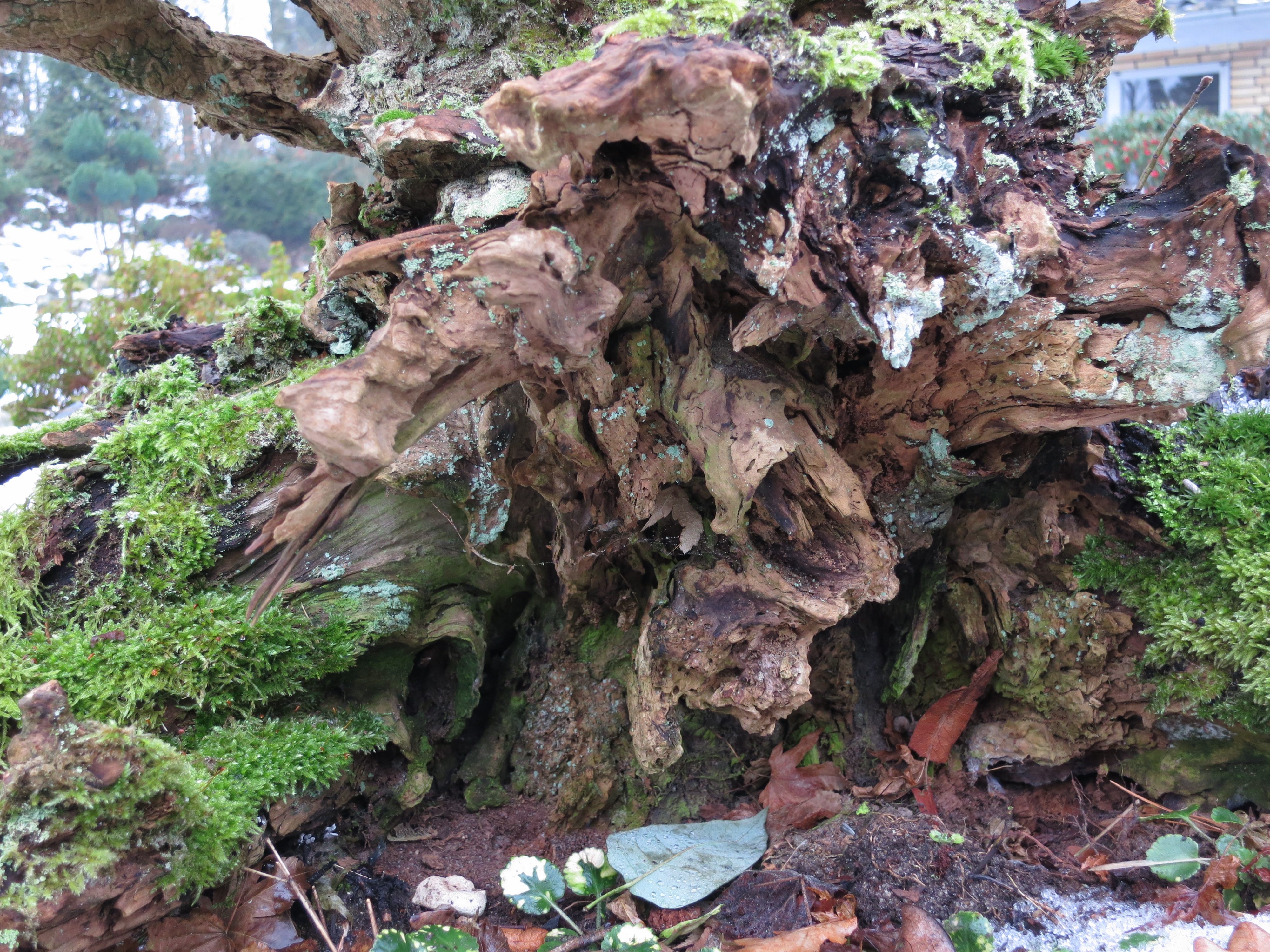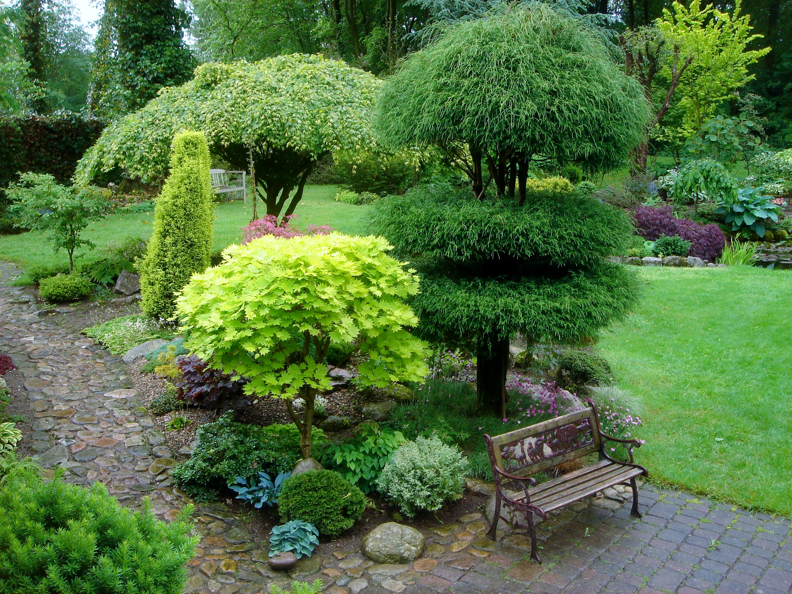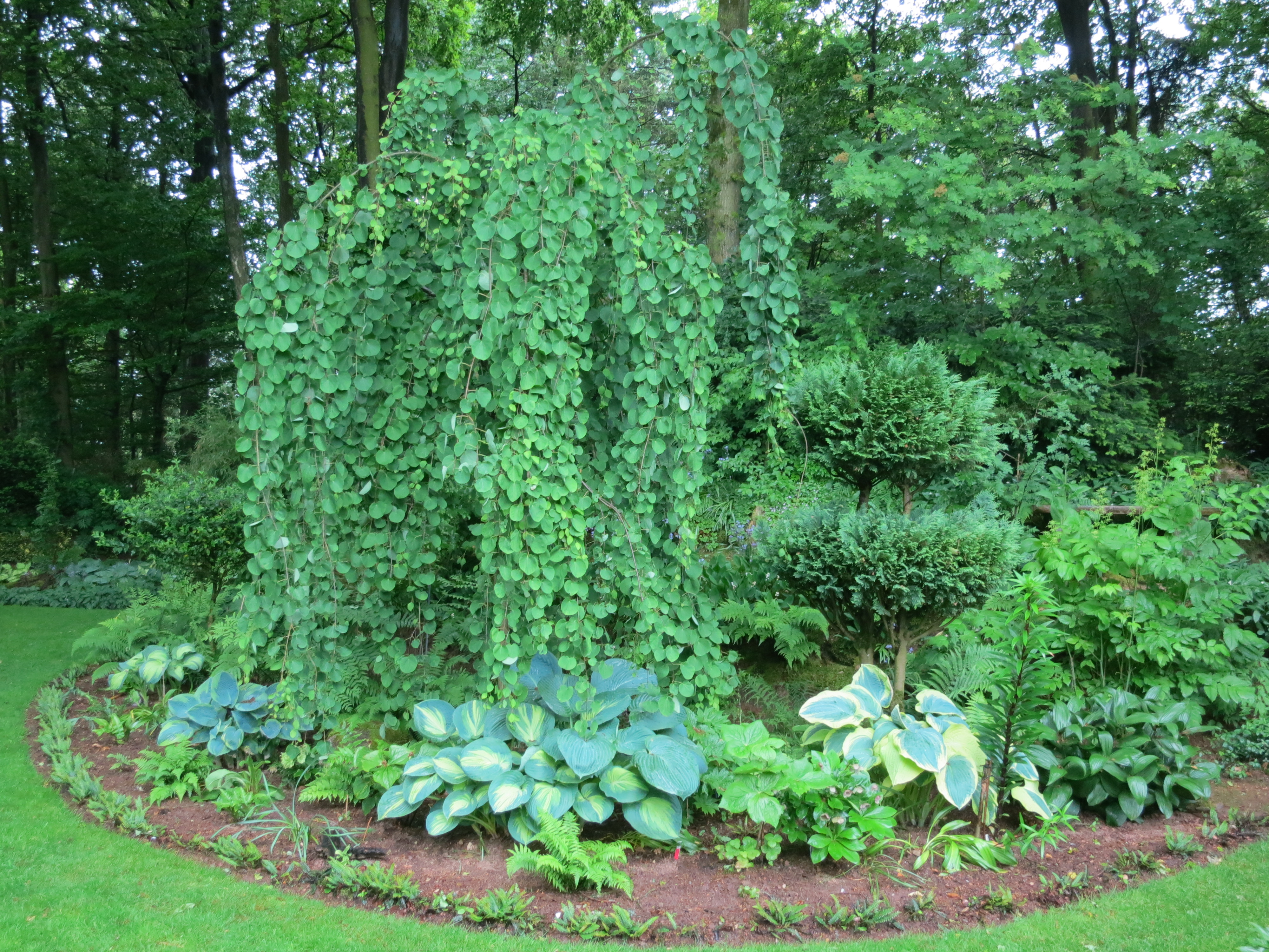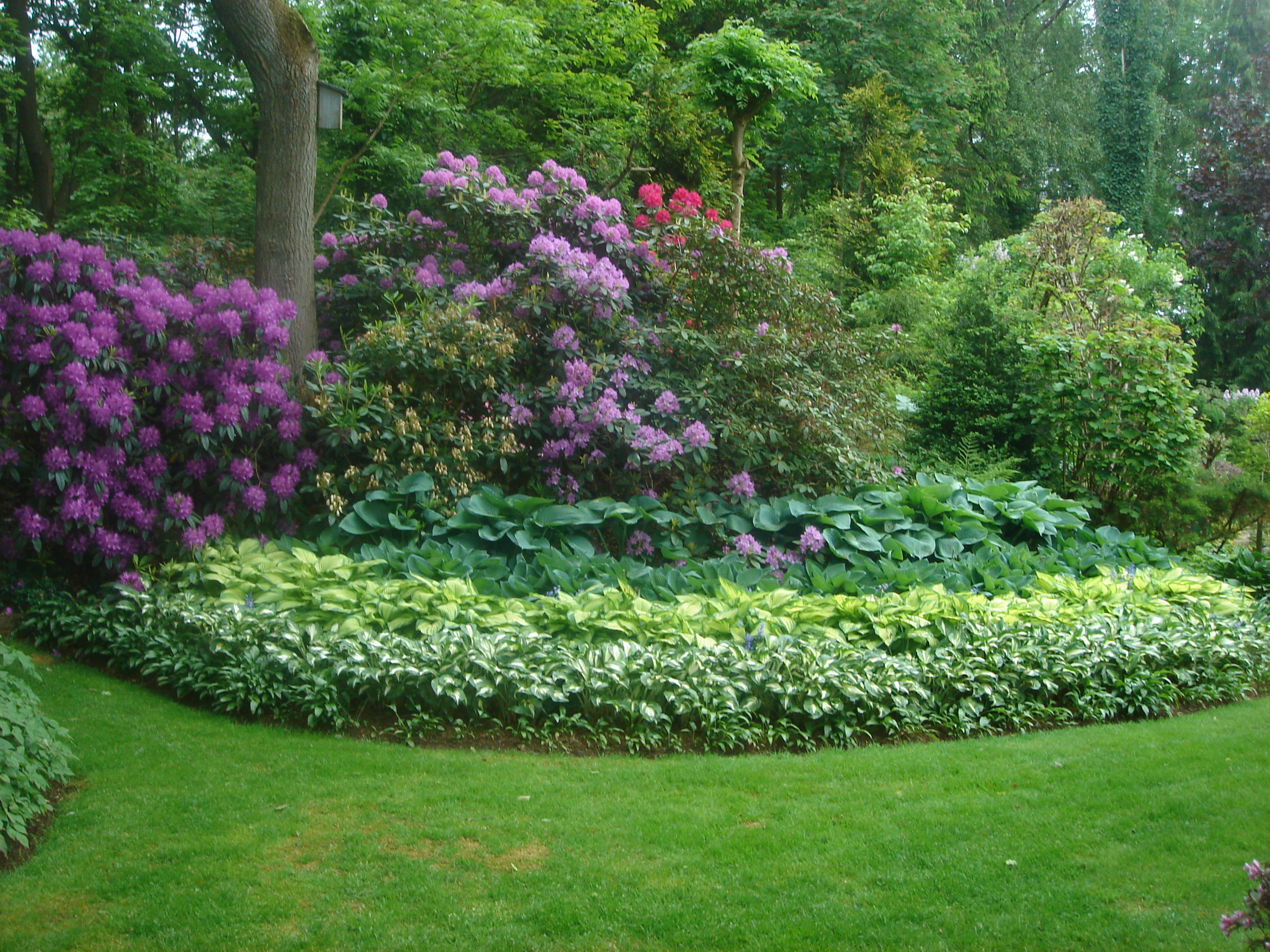"GAMMEL HAVE I BAKKET SKOVOMRÅDE BELIGGENDE I NY VILLAKVARTER". Haven på 4600 kvm er anlagt i bakket skovområde med en spændende indretning, hvor natur og haveanlæg forenes, så der er blevet plads til meget biodiversitet. I haven er der bede med rhododendron, bregner, hosta, og andre forskellige stauder og stenbedsplanter. Sten og træstammer samt trærødder er anvendt ved anlæg af de forskellige bede. Der er plantet en del sjældne træer og buske. Vi har flere træer og stedsegrønne, der er formklippede. Et vandparti er anlagt så terrænet er udnyttet til flere vandfald.