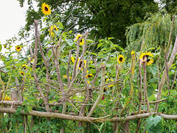Almindelig solsikke, Helianthus annuus – Enårig sommerblomst. Den klassiske høje solsikke med store blomsterhoveder.