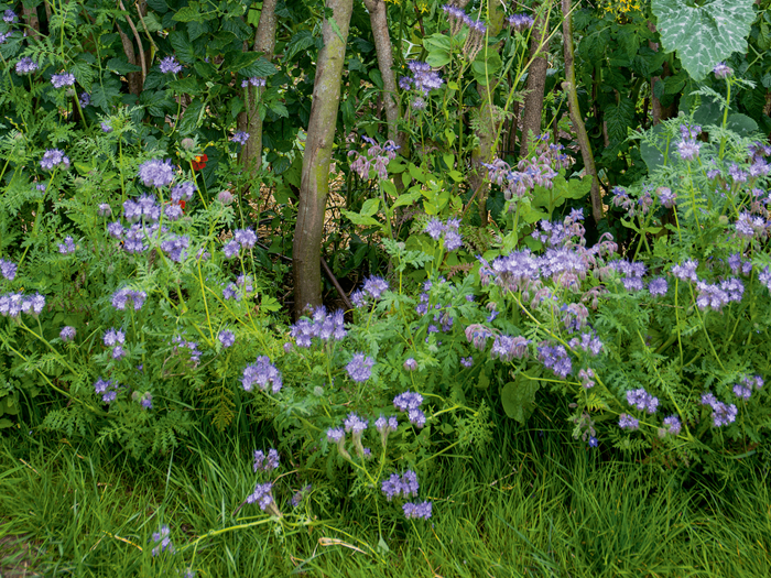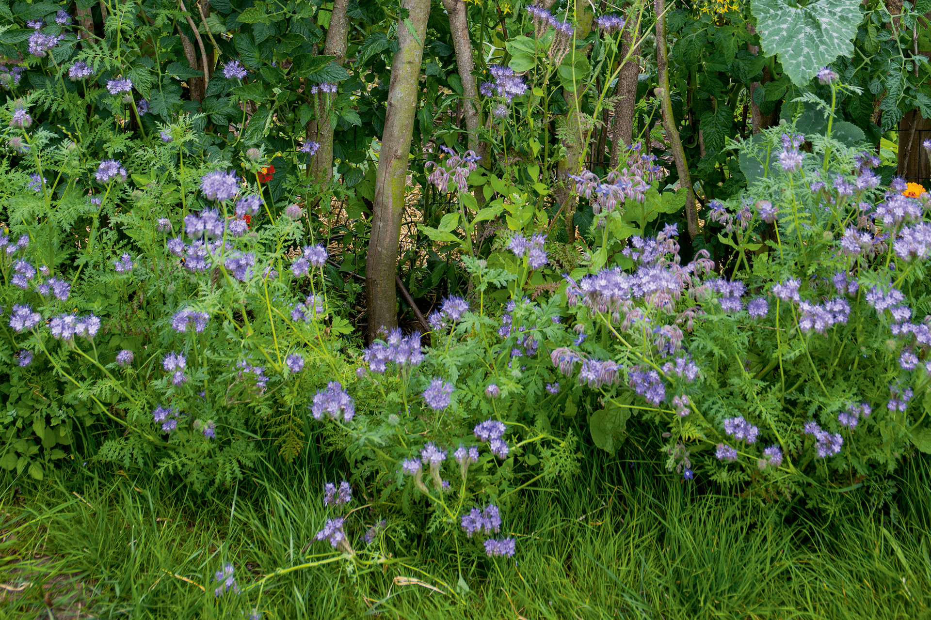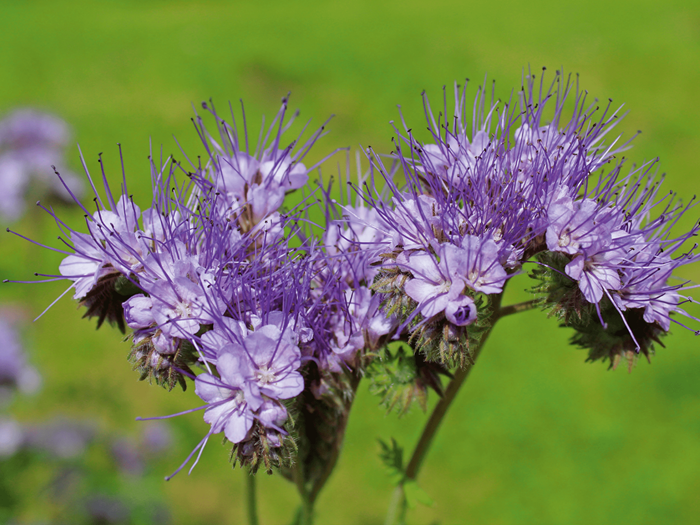 Almindelig honningurt, Phacelia tanacetifolia – Enårig sommerblomst og grøngødningsplante. Blå blomster i juni-september.