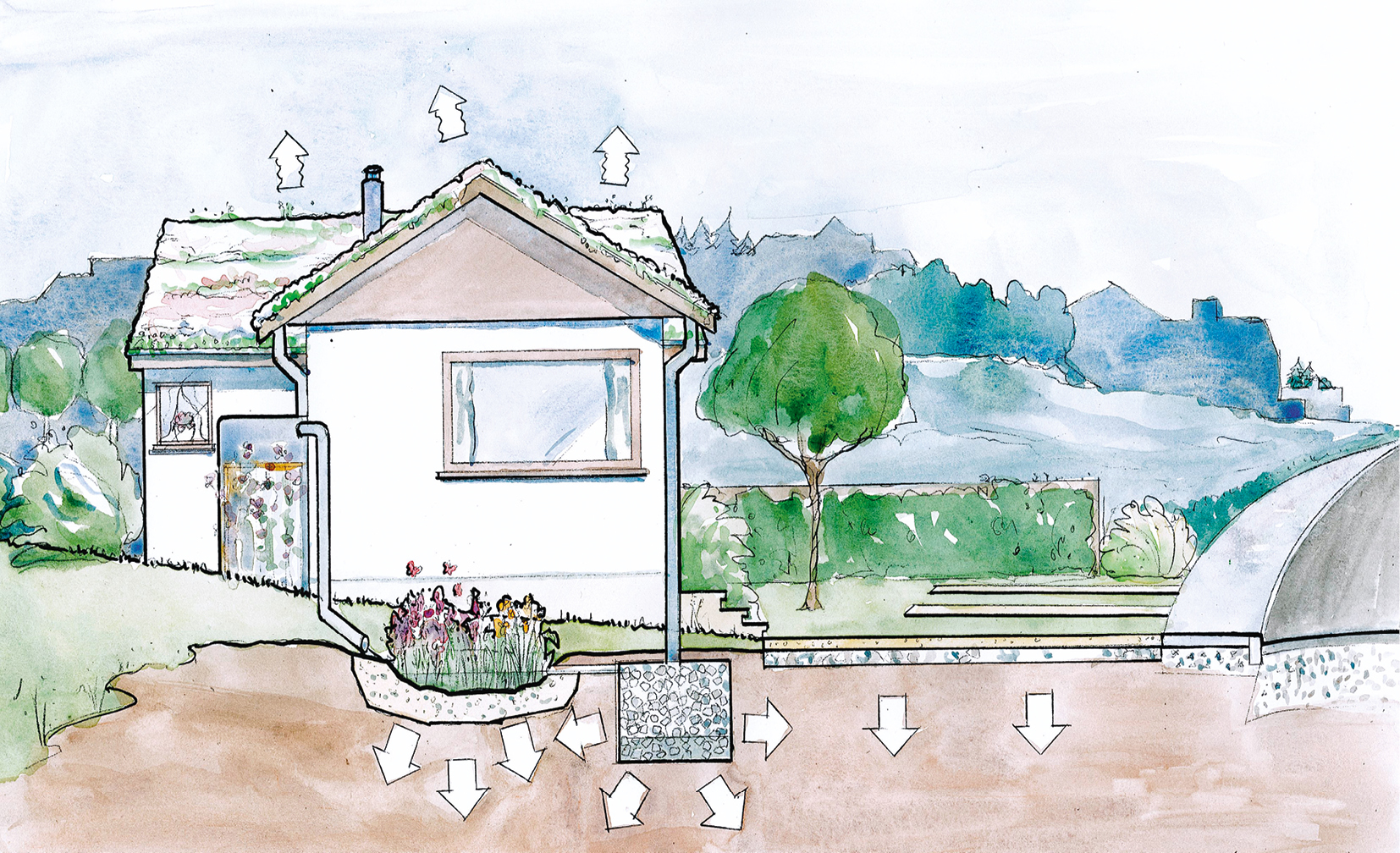 Alle typer af haver kan rumme en eller anden form for regnvandsløsning og der er mange spændende muligheder. 𝟏. Du kan opsamle en del af regnen i en regntønde eller tank og få gratis vand til at vande haven. 𝟐. Du kan ændre belægningen i din indkørsel, så vandet kan sive igennem belægningen i stedet for at løbe ud på vejen. Og 𝟑. du kan lægge et grønt tag på huset eller carporten, som tilbageholder og fordamper en stor del af det vand, der falder på taget.