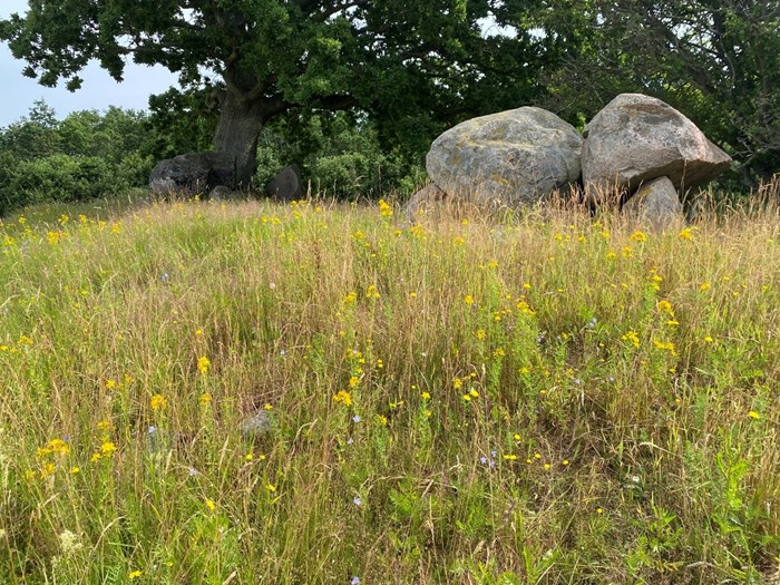 Foto ovenfor th.: Gravhøj nær Tranekær, Langeland (MCB 2021)