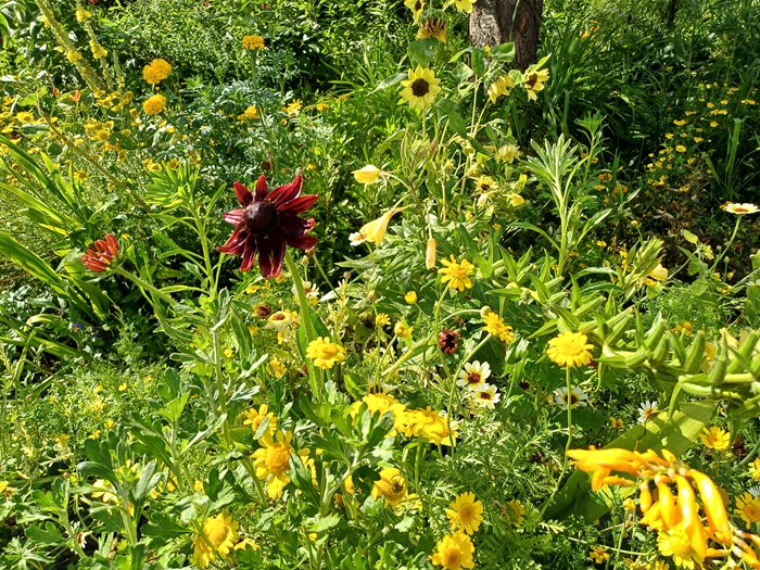 Design et blomstrende staudebed
