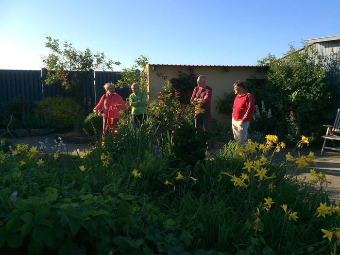 Vi studerer haven, får og giver gode ideer, bytter lidt overskudsplanter og frø – og så slutter vi af med en kop kaffe med lidt spiseligt til. Vi har også haft en udflugt til en nedlagt planteskole, med virkelig mange spændende planter.