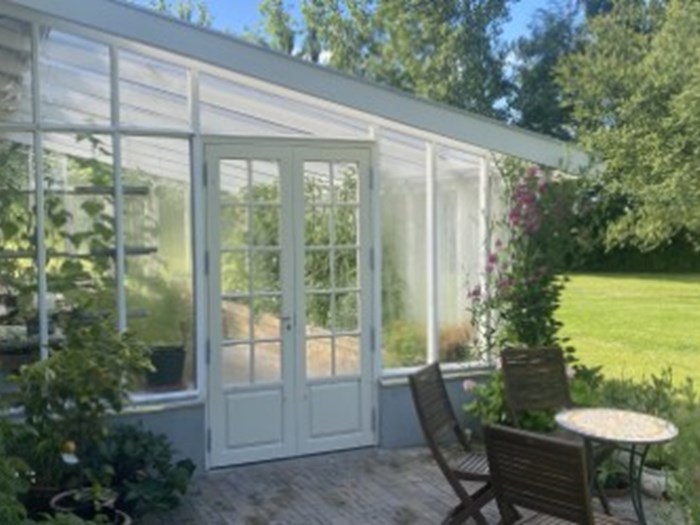 Ud over drivhuset sætter vi pavillon op - og vi sørger for borde og stole.