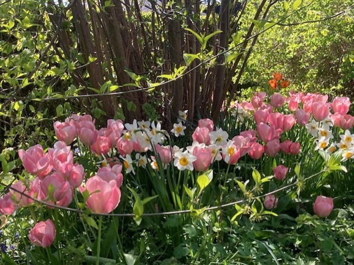 En have fuld af tulipaner hos Marie - en frodig plet med hos Elisabeth & Torben - en havedam med bede omkring hos Henrik