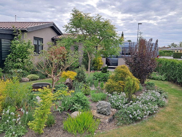 Da Elisabeth & Torben kom til deres lille parcelhushave på Bøgevej i 2018 var den nærmest tom, nu er den fuld af stauder, rhododendronbed samt en fuglevoliere.