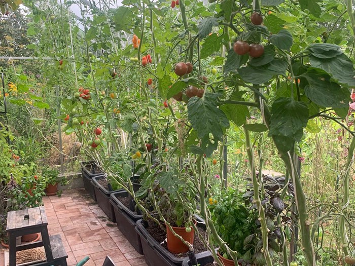 Der er stort set ikke synlig jord i haven, idet Kati planter tæt og altid med en tanke om, hvilke planter passer sammen. Hun har også mange spændende buske. I haven er der også et drivhus, hvor tomatplanter står tæt, og der også dyrkes peberfrugt og chili. I køkkenhaven/skærehaven dyrkes der mest blomster til buketter. Men der er også grønne asparges, nye kartofler, tomater og lidt frugtbuske og frugttræer.