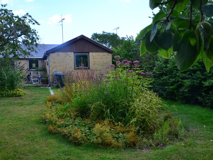 Frodigt regnbed i baghaven