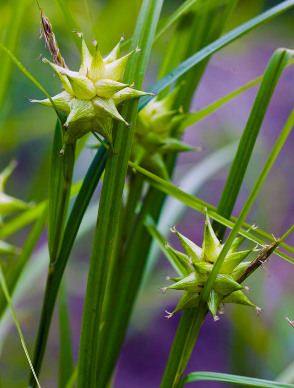 I bedet her står blandt andre den markante græs morgenstjernestar, der har en karakteristisk stjerneformet top, og hamphjortetrøst, der danner højde midt i bedet, og som sammen med duehoved og kattehale danner en violet skala i sensommeren. Som bund i bedet er både storkenæb, løvefod og engnellikerod, og som markante lyse farveklatter spreder den gule daglilje sine blomster ud i løbet af sommeren.