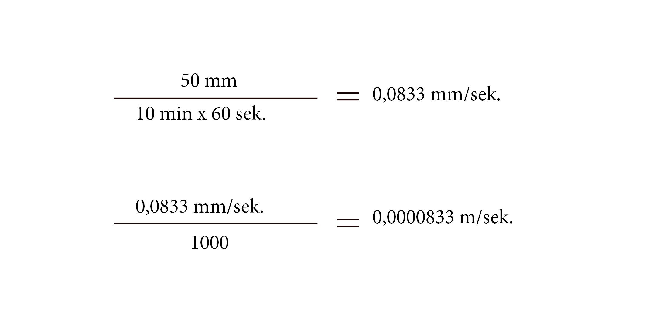 Hvis vandet synker 50 mm på 10 min, vil beregningen se således ud.