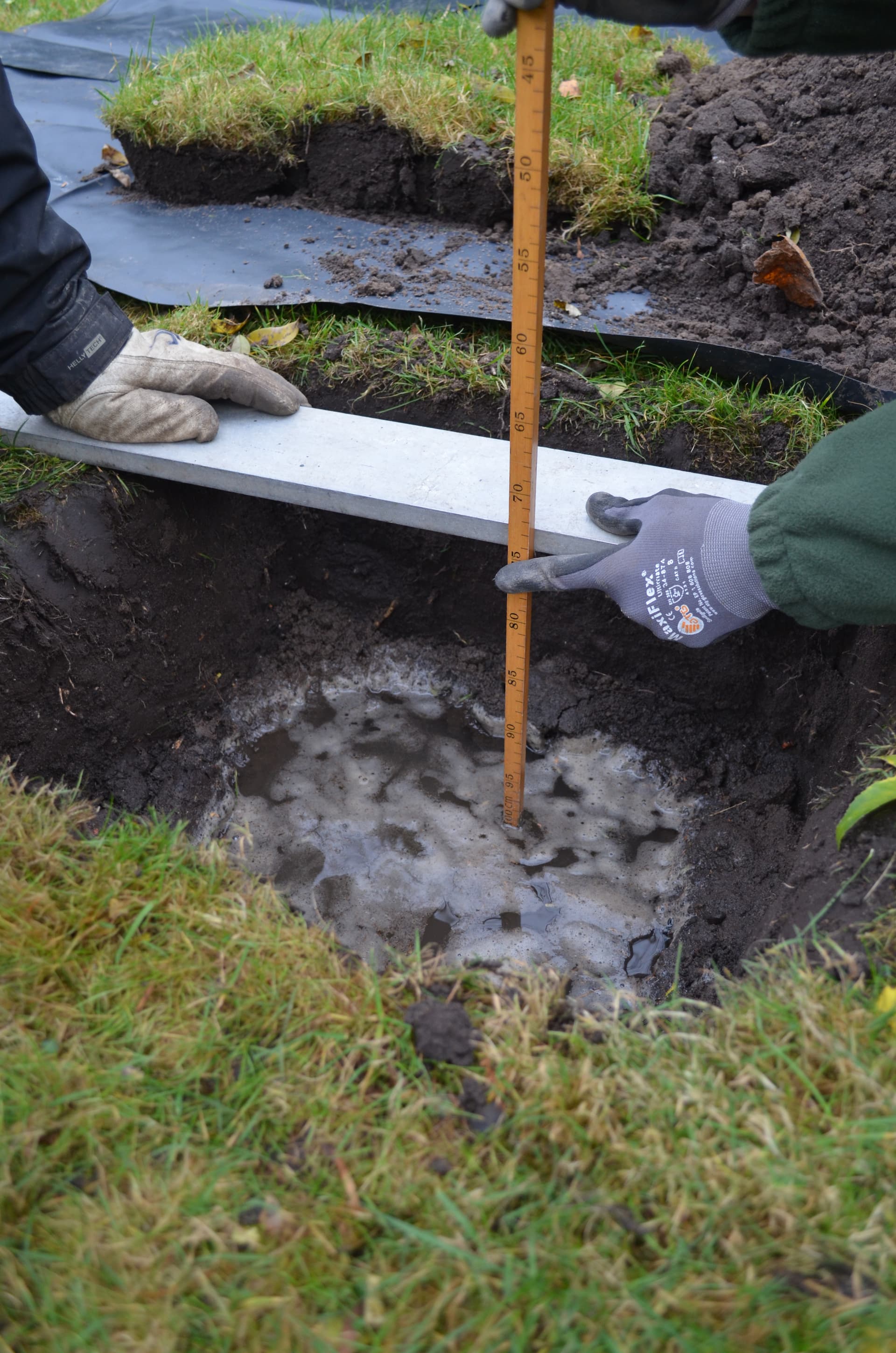 Græstørven fjernes i en firkant på min. 50 x 50 cm