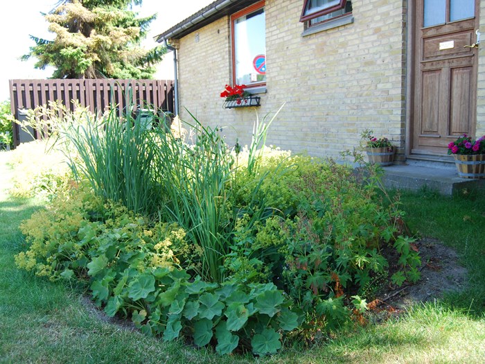 "Når jeg står og laver mad, kigger jeg lige ud på bedet. Rigtig ofte går der folk forbi, som stopper op og kigger på det. Så åbner jeg vinduet og spørger, om ikke de synes, det er flot. På den måde får jeg en snak i gang, og jeg fortæller de forbipasserende om regnbede," forklarer Anni Sinnet smilende.