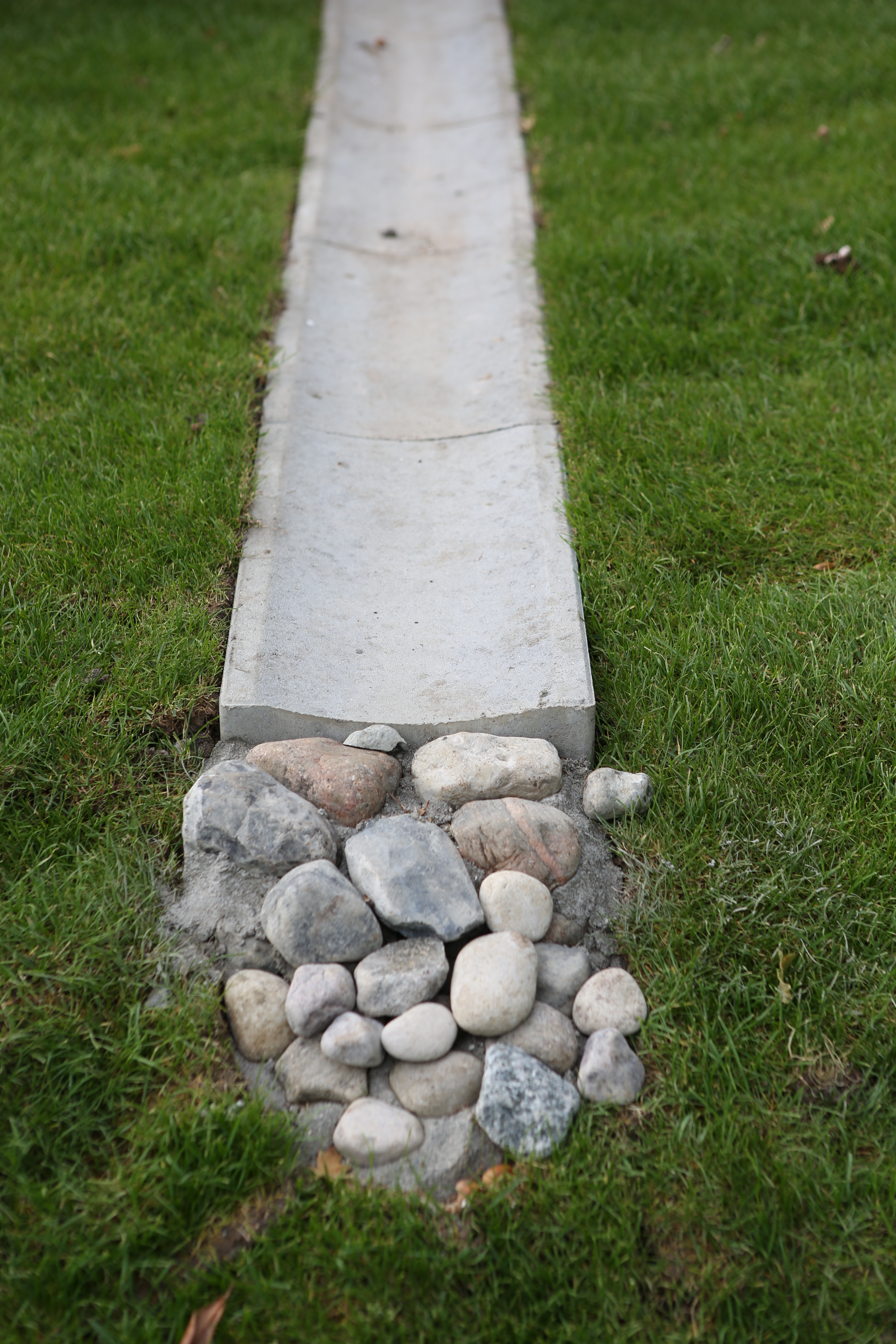 Betonrender kan købes færdige i moduler på 60 cm længde. De egner sig rigtig godt til den tætte rende inden for 5 meter fra huset. Den lægges i lige linjer og kan tilpasses eksisterende terrassebelægning. Betonrenden har et lidt hårdt udtryk hvis de fortsættes ned gennem i græsplænen. Du kan derfor overveje at skifte til en af de andre rendetyper, når du er 5 meter væk fra huset og ikke længere behøver en tæt rende.