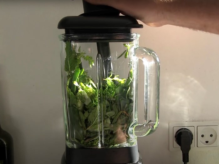 - Blend først krydderurter til en fin grøn pasta og blend herefter med den samme mængde groft salt.