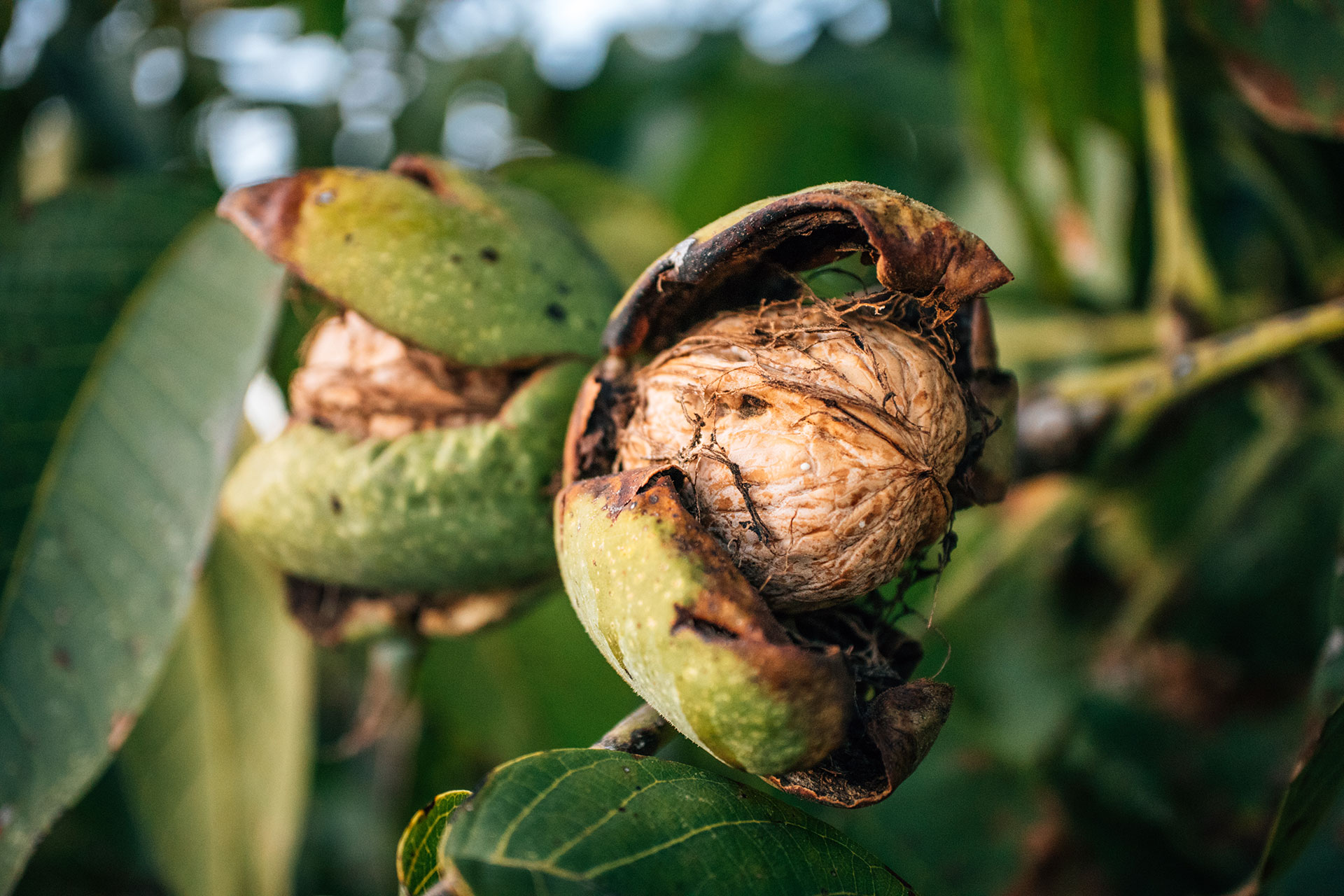 I efteråret kan du plukke de grønne valnødder til (næste års) julesnaps, før de bliver for hårde i skallen. Men du kan også lave snaps af de tørrede valnøddeskaller. Få opskrifterne hér.