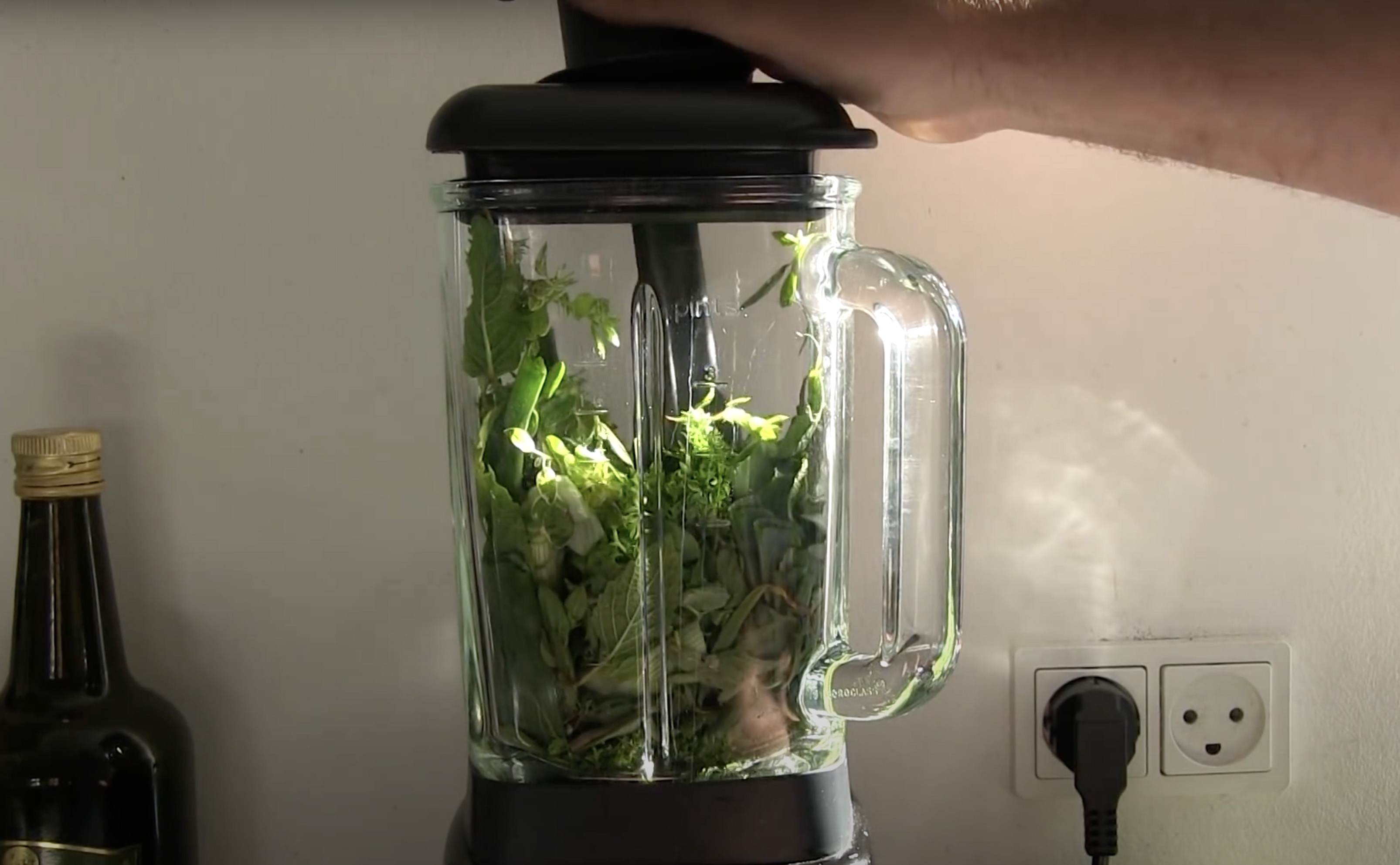 - Blend først krydderurter til en fin grøn pasta og blend herefter med den samme mængde groft salt.