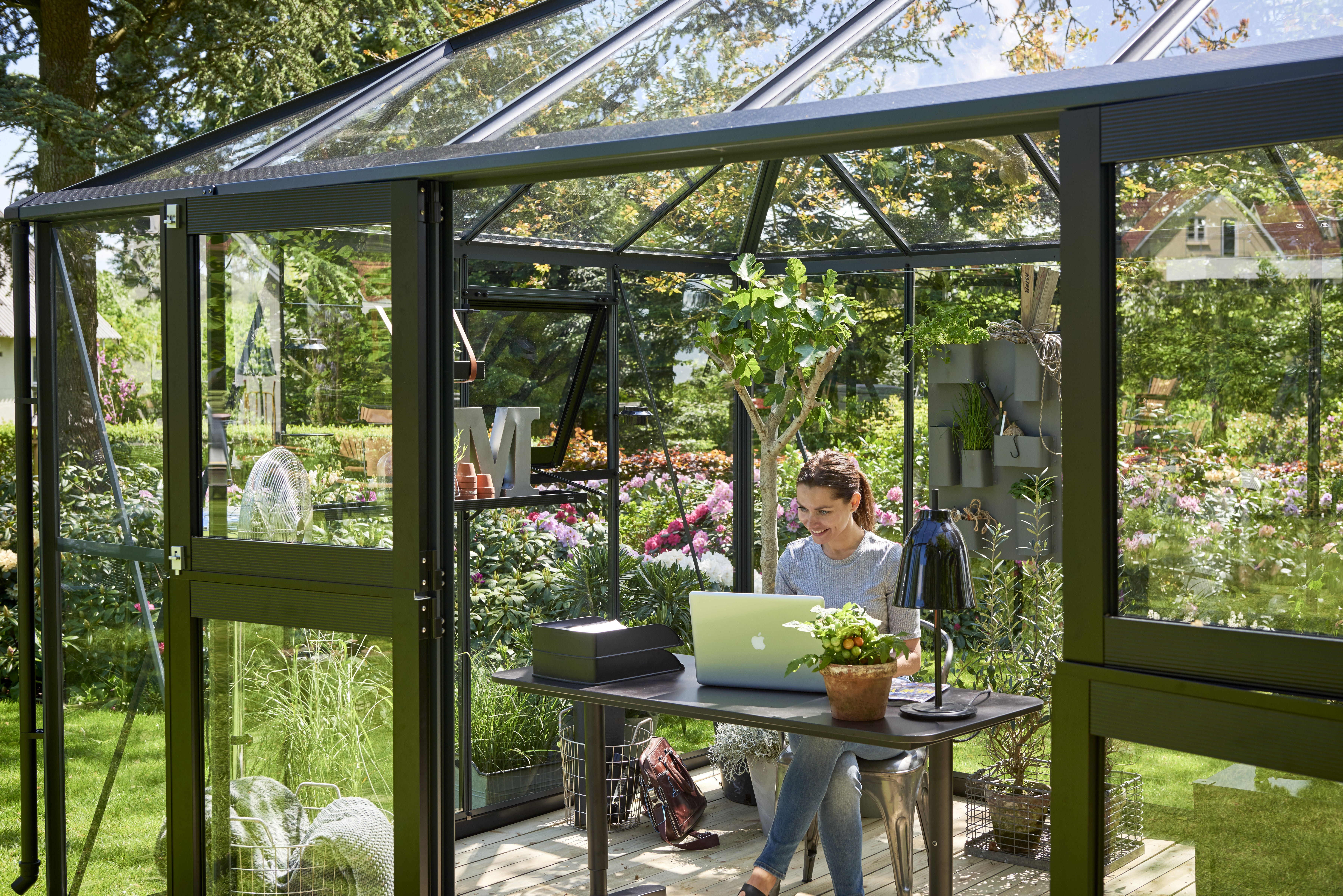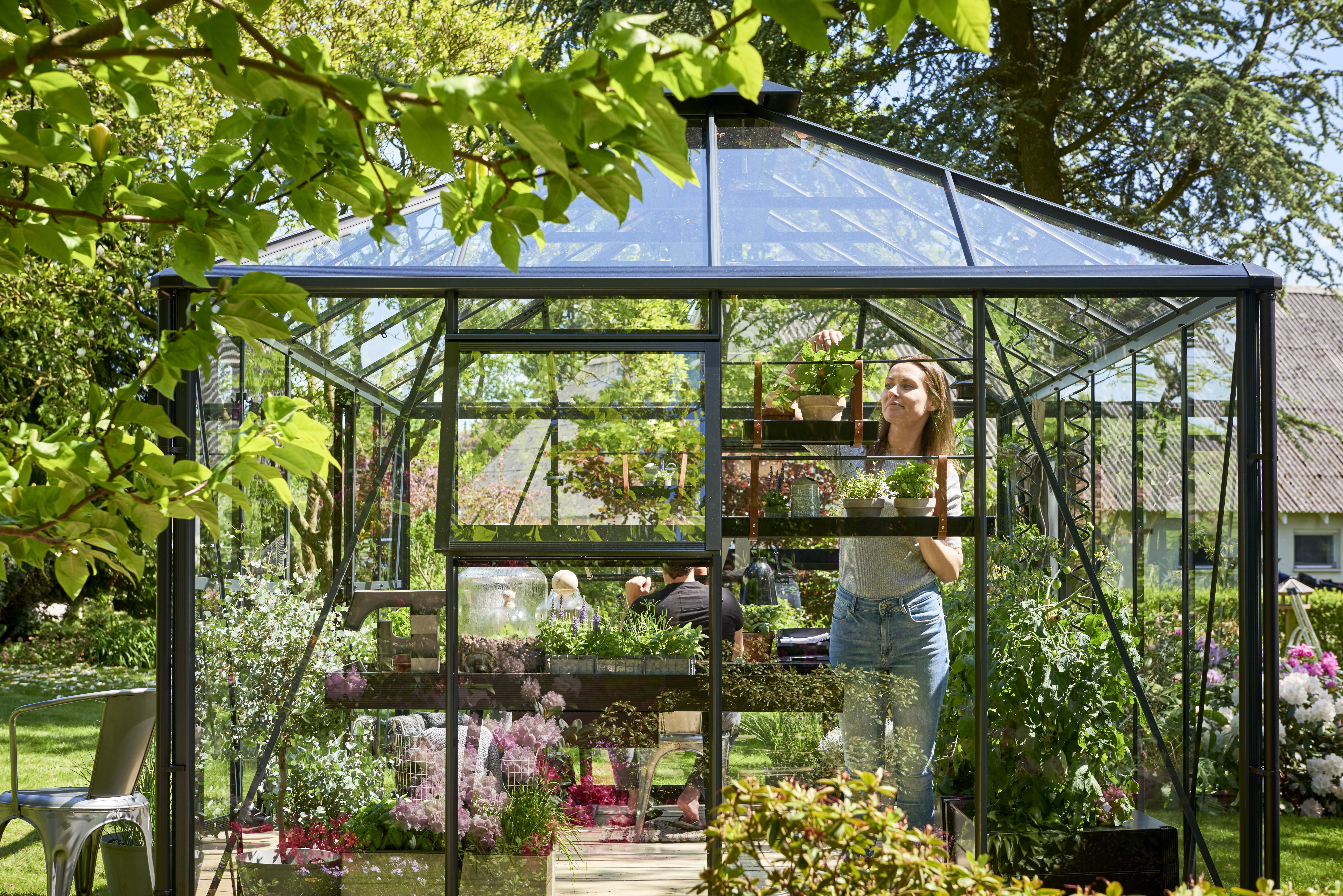 I dag spiller drivhuset en langt mere central rolle, når vi indretter og bruger vores have. Allerhelst placerer vi det tæt på terrasse eller havedør, så vi nemt kan tage kaffen med derud.