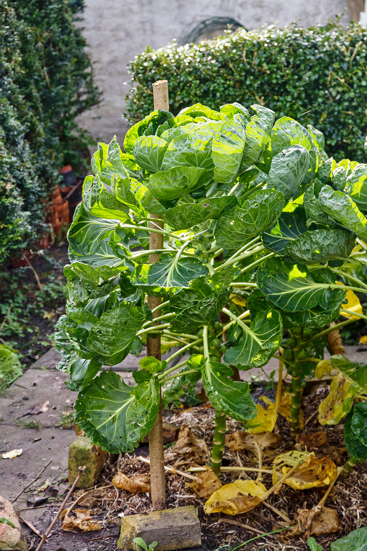 De sene sorter af rosenkål som 'Trafalgar' F1 og 'Brendan' F1 er jeg særlig glad for, da de overlever selv i hårde vintre og giver rigtig mange lækre, små hoveder fra januar til april. Jeg binder dem fast til pæle inden vinter, da de ellers ofte ender nede på jorden og i snerige vintre under sneen. Jeg placerer altid bedet med de sene rosenkål et sted, hvor der normalt ikke lægger sig snedriver.