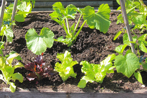 Bed 3 Tidlige kartofler - stangbønne - salat - agurk - courgette