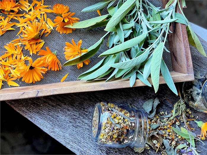 Man kan også med fordel blande dine dyrkede urter med de sankede og dermed få en god blanding af urter. Igen, vil vi nævne Brændenælden eller Lindeblomsten, gode basisurter som du med fordel kan blande med Anis Isop, Mynte eller Kamille.