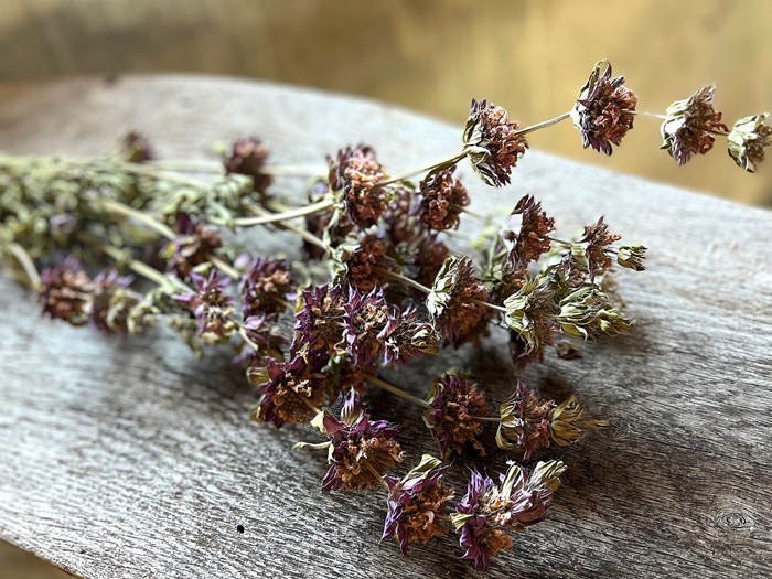 Hos Spirekassen tørrer de deres urter ved at hænge dem i små bundter i et tørt, lunt og luftigt sted. Det kan være i et udhus eller på et loft. Man skal bare undgå direkte sollys, da det kan ødelægge de essentielle olier, som giver urterne deres smag. Når urterne er knastørre (normalt efter 7-14 dage), plukker de bladene af og opbevarer dem i lufttætte glas – gerne med navneskilt og årstal på.