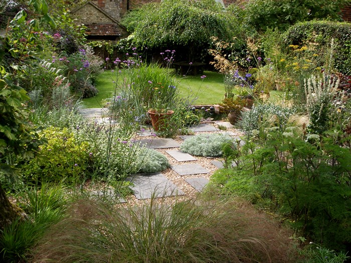 Hvordan man skaber en have, som det er en fryd at opholde sig i? Det har Annie Guilfoyle masser af råd om, og det første, hun nævner, er dette: "Hold det enkelt. Lad være med at overlæsse haven med elementer. Arbejd med enkle linjer, og sørg for, at haven har en klar idé. Det er lidt som at skrive: Begynd med at få det hele ned på papiret – og fjern så alt det, du ikke behøver".