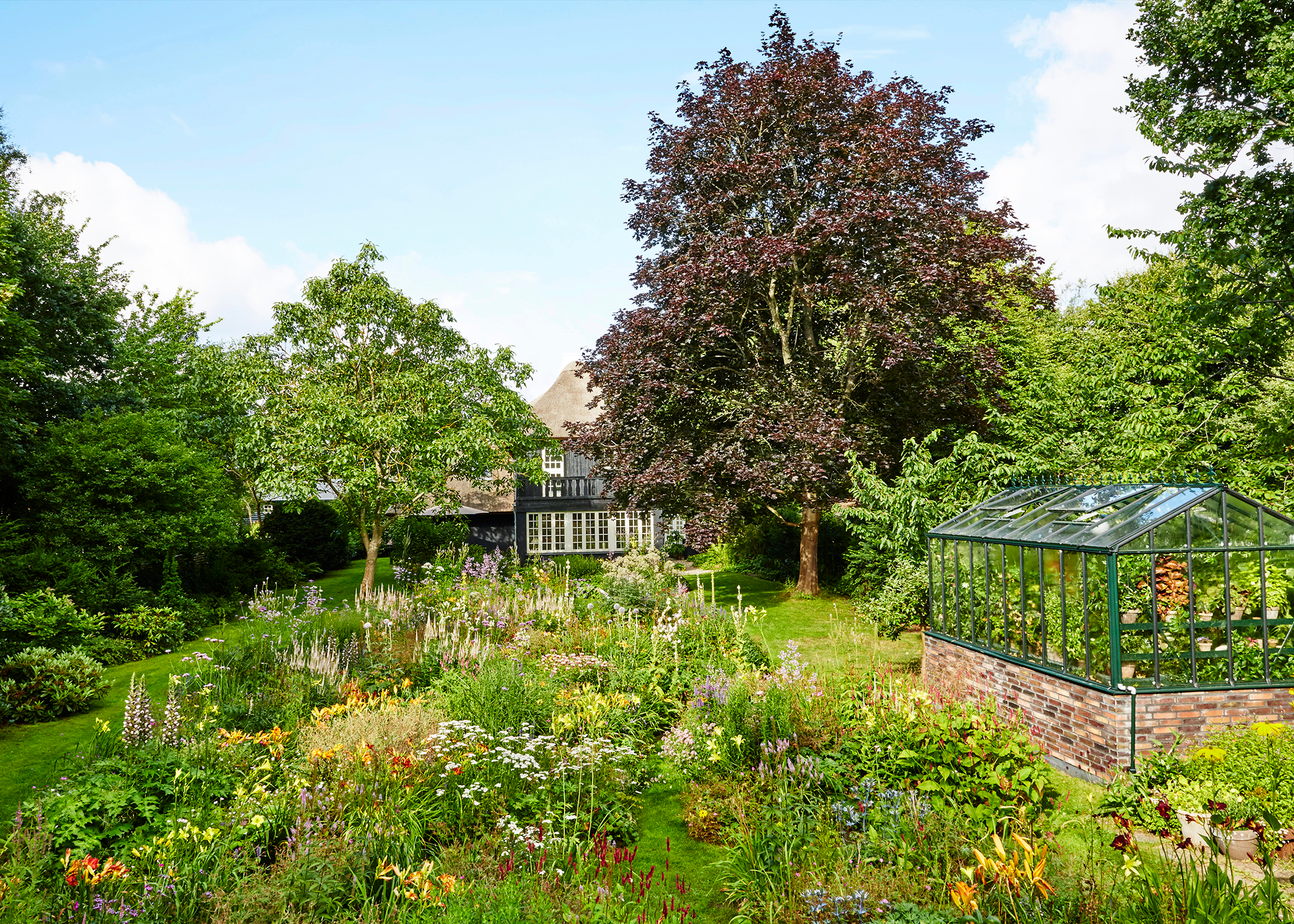 »Jeg var opsat på at bevare et uformelt og naturligt udtryk, og de store, ryddede arealer skulle hurtigst muligt dækkes af kønne blomster,« fortæller han.