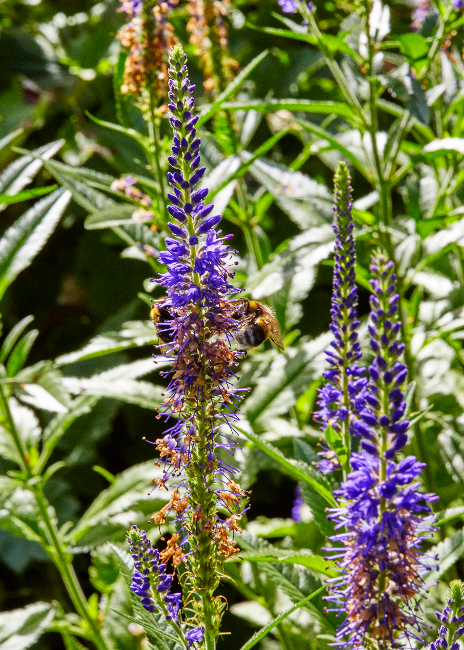 4. Aksærenpris, Veronica spicata, blomstrer frodigt i sommermånederne og er attraktive for havens bier.