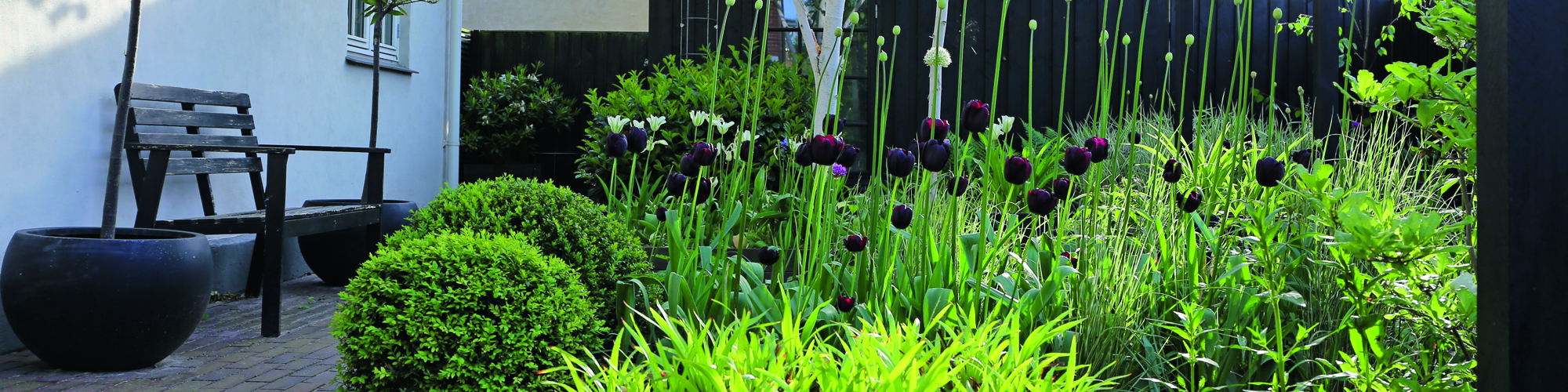 - Blomsterbede, busketter og andre sammenhængende plantninger afsættes med en linje, der viser deres omfang.