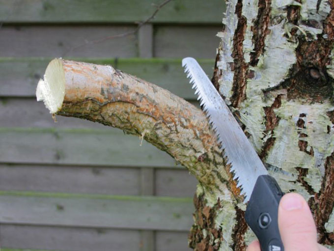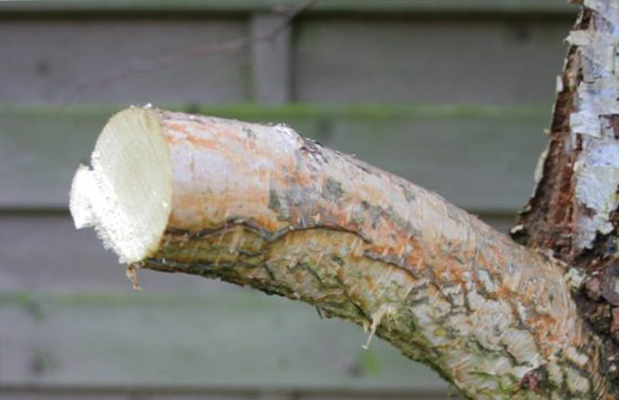 Læg snittet mindst 20 cm inde i det sunde ved eller fjern grenen helt inde ved stammen.