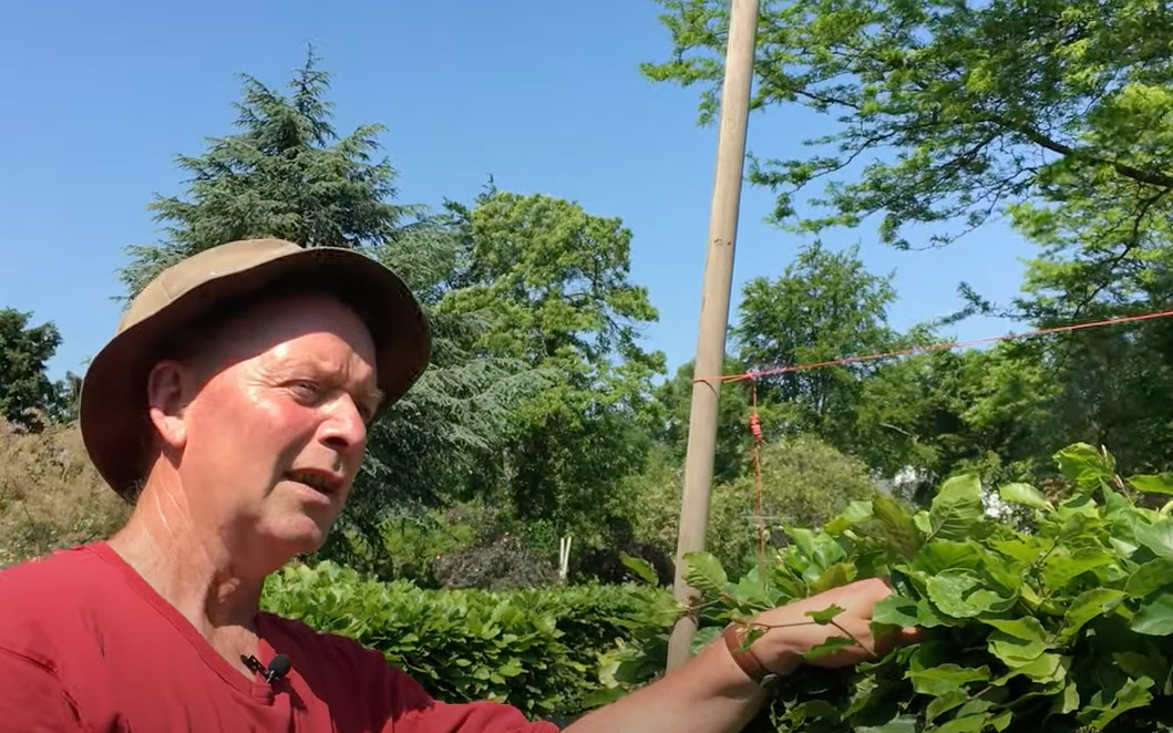 Gartner Jan Søgård Jensen fra Haveselskabets Have viser, hvordan du sætter en snor op, som du kan klippe efter, når hækken skal være helt lige.
