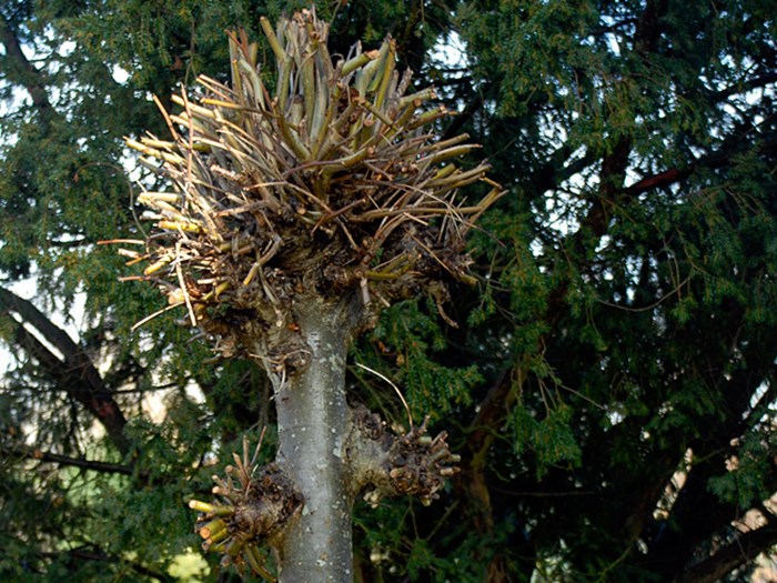 Styning er en mulighed, når et træ med en enkelt stamme er blevet for voldsom eller viser tegn på at vokse for voldsomt de næste år.