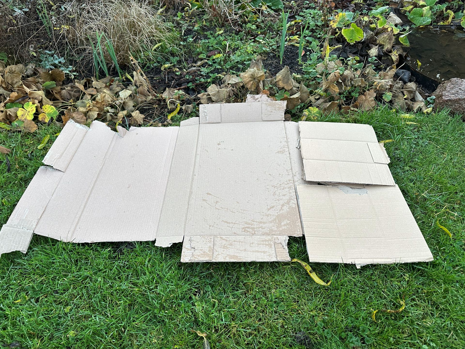 Formålet med pappet er at kvæle græs og ukrudt, samtidig med man undgår at grave unødigt i jorden, når man vil etablere en gravefri have - No Dig.