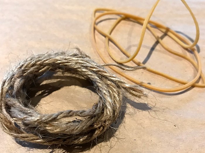 Saml elastikkerne og bind snor omkring så elastikkerne dækkes helt.