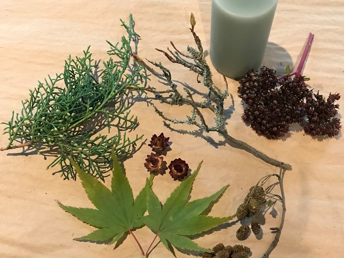 • Gå en tur i haven og find, hvad der er af smukke grene, frøstande og andet med en god længde.