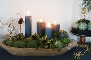 Alle tørre materialer som fx kogler, skaller, nødder eller andet skal limes på tør oasis – altså den grå type.