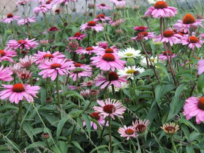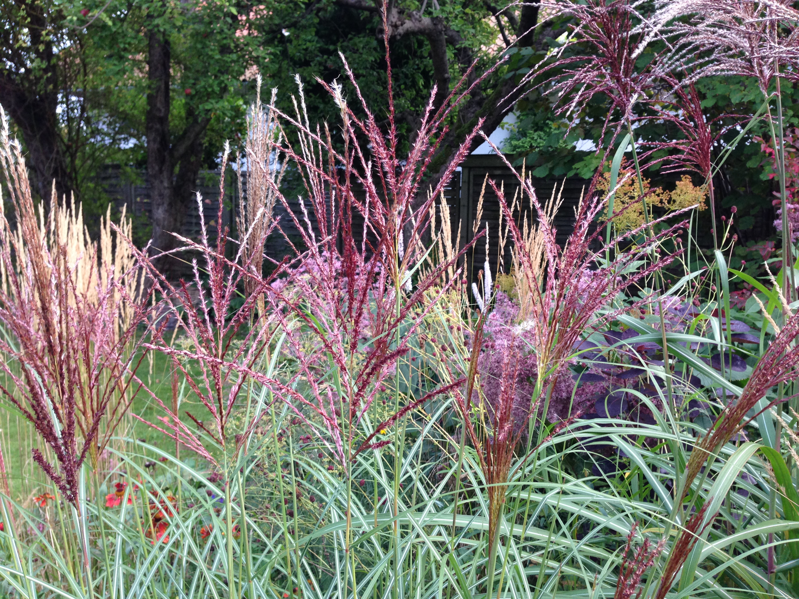 Purpursolhat, elefantgræs, virginsk ærenpris og staudeprydløg.